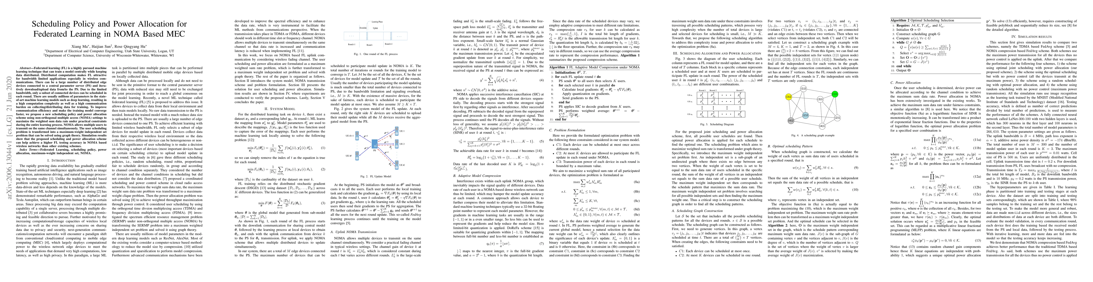 This paper proposes a scheduling policy and power allocation scheme using non-orthogonal multiple access (NOMA) for federated learning in edge computing to maximize data rate efficiency and improve model convergence. Simulation results show enhanced federated learning accuracy compared to existing methods.