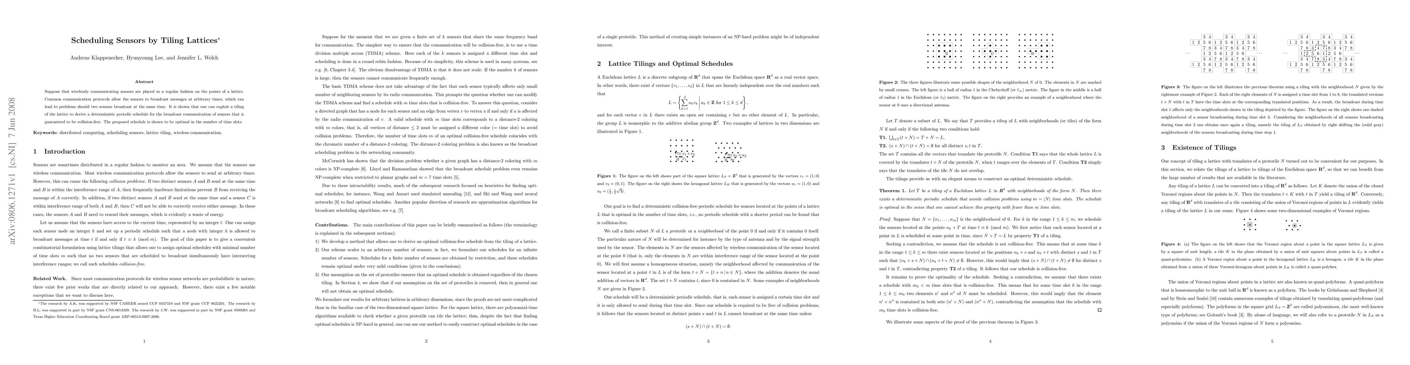 Suppose that wirelessly communicating sensors are placed in a regular fashion on the points of a lattice. Common communication protocols allow the sensors to broadcast messages at arbitrary times, which can lead to problems should two sensors broadcast at the same time. It is shown that one can exploit a tiling of the lattice to derive a deterministic periodic schedule for the broadcast communication of sensors that is guaranteed to be collision-free. The proposed schedule is shown to be optimal in the number of time slots.