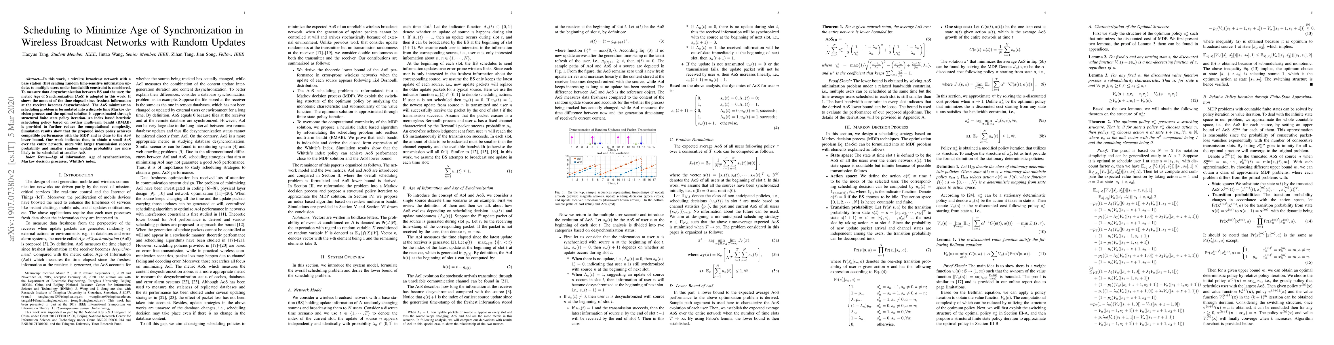 A research paper proposes a scheduling policy to minimize Age of Synchronization (AoS) in wireless broadcast networks with random updates, achieving comparable performance to the lower bound for AoS minimization.