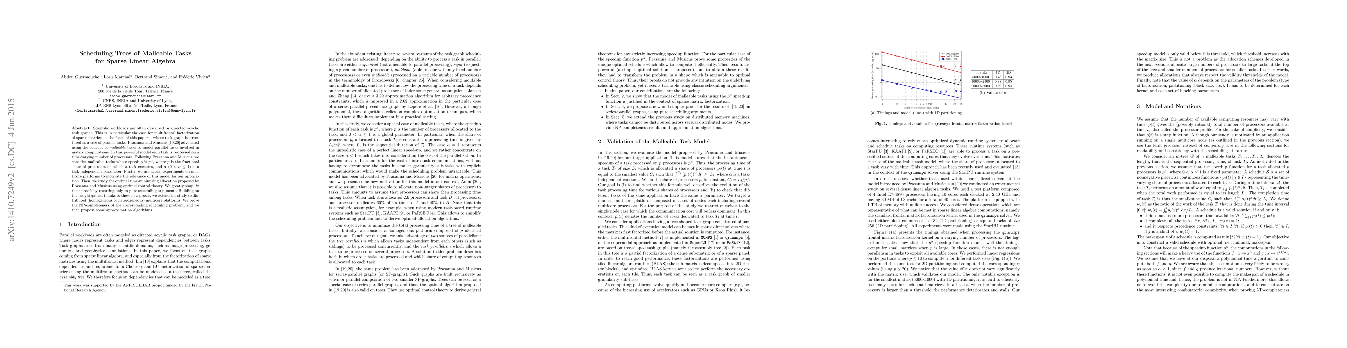 Researchers developed a scheduling model for parallel tasks in sparse linear algebra to optimize performance on multicore platforms. Their approach achieved up to 16% average performance gain compared to existing solutions.