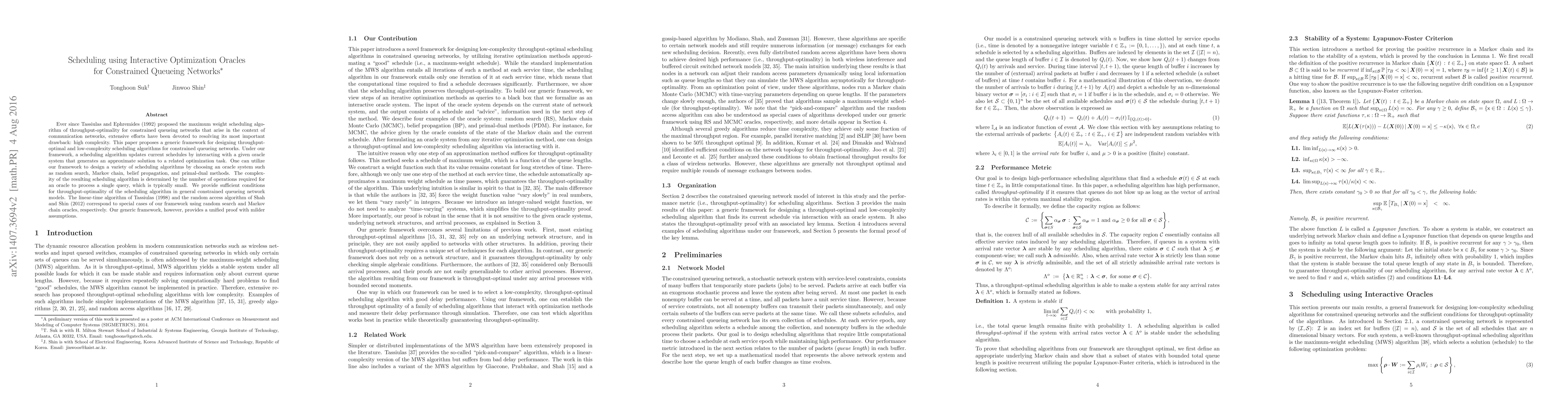This paper introduces a framework for creating low-complexity, throughput-optimal scheduling algorithms for constrained queueing networks by interacting with an optimization oracle. The framework accommodates various oracle systems, ensuring the resulting algorithms maintain optimal throughput under general conditions.