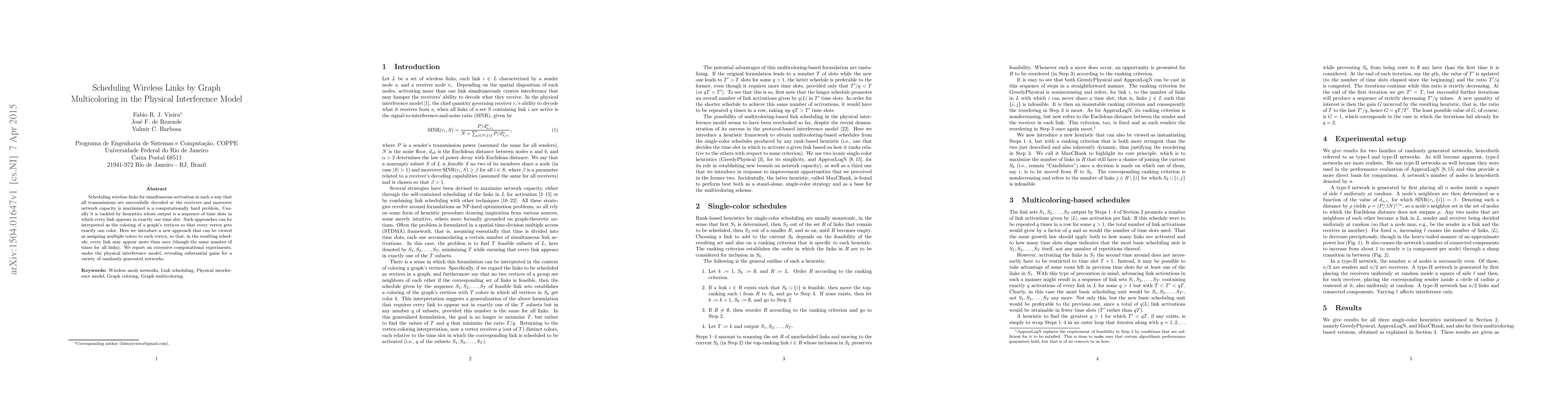 Researchers introduce a new approach to scheduling wireless links that assigns multiple colors to each vertex in a graph, resulting in substantial gains for various randomly generated networks under the physical interference model.