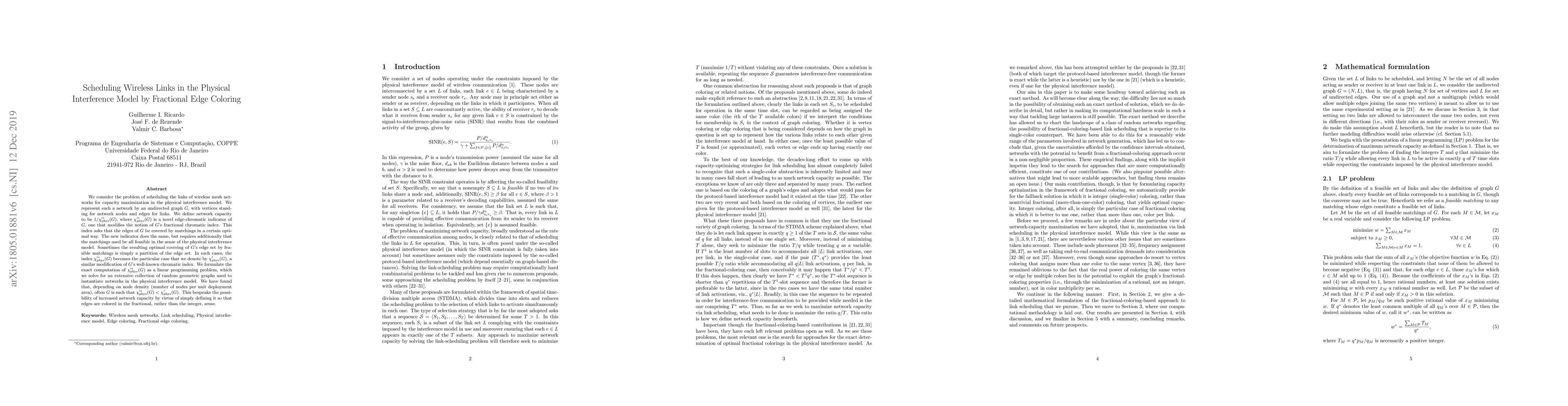 We consider the problem of scheduling the links of wireless mesh networks for capacity maximization in the physical interference model. We represent such a network by an undirected graph $G$, with vertices standing for network nodes and edges for links. We define network capacity to be $1/\chi'^*_\mathrm{phys}(G)$, where $\chi'^*_\mathrm{phys}(G)$ is a novel edge-chromatic indicator of $G$, one that modifies the notion of $G$'s fractional chromatic index. This index asks that the edges of $G$ be covered by matchings in a certain optimal way. The new indicator does the same, but requires additionally that the matchings used be all feasible in the sense of the physical interference model. Sometimes the resulting optimal covering of $G$'s edge set by feasible matchings is simply a partition of the edge set. In such cases, the index $\chi'^*_\mathrm{phys}(G)$ becomes the particular case that we denote by $\chi'_\mathrm{phys}(G)$, a similar modification of $G$'s well-known chromatic index. We formulate the exact computation of $\chi'^*_\mathrm{phys}(G)$ as a linear programming problem, which we solve for an extensive collection of random geometric graphs used to instantiate networks in the physical interference model. We have found that, depending on node density (number of nodes per unit deployment area), often $G$ is such that $\chi'^*_\mathrm{phys}(G)<\chi'_\mathrm{phys}(G)$. This bespeaks the possibility of increased network capacity by virtue of simply defining it so that edges are colored in the fractional, rather than the integer, sense.