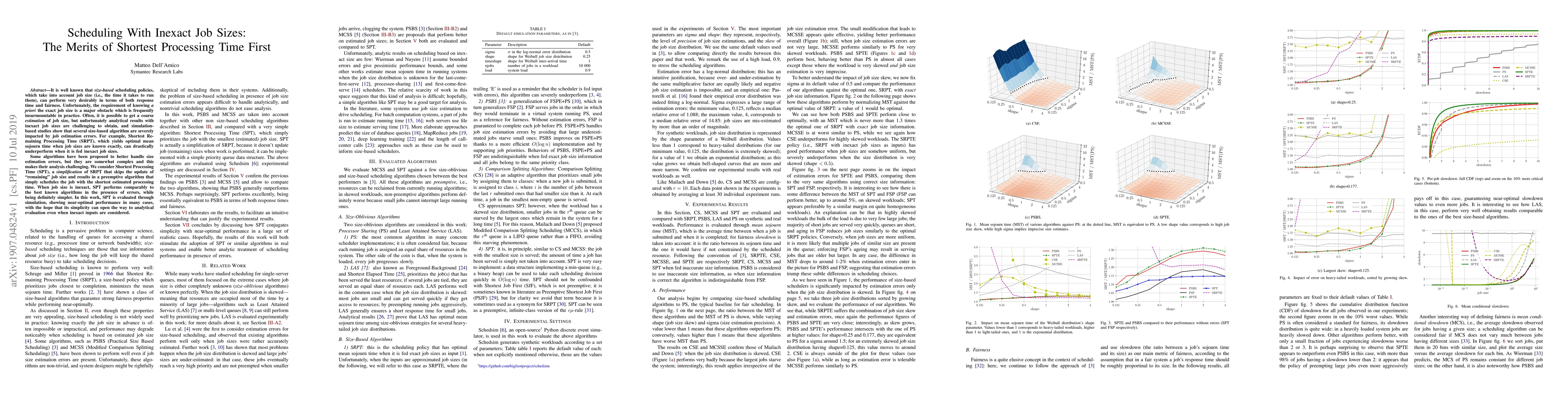This paper evaluates the Shortest Processing Time (SPT) scheduling algorithm for jobs with inexact size estimates, demonstrating its near-optimal performance through simulation. Unlike complex alternatives, SPT's simplicity makes it a promising candidate for further analytical study despite the challenges posed by inaccurate job size information.