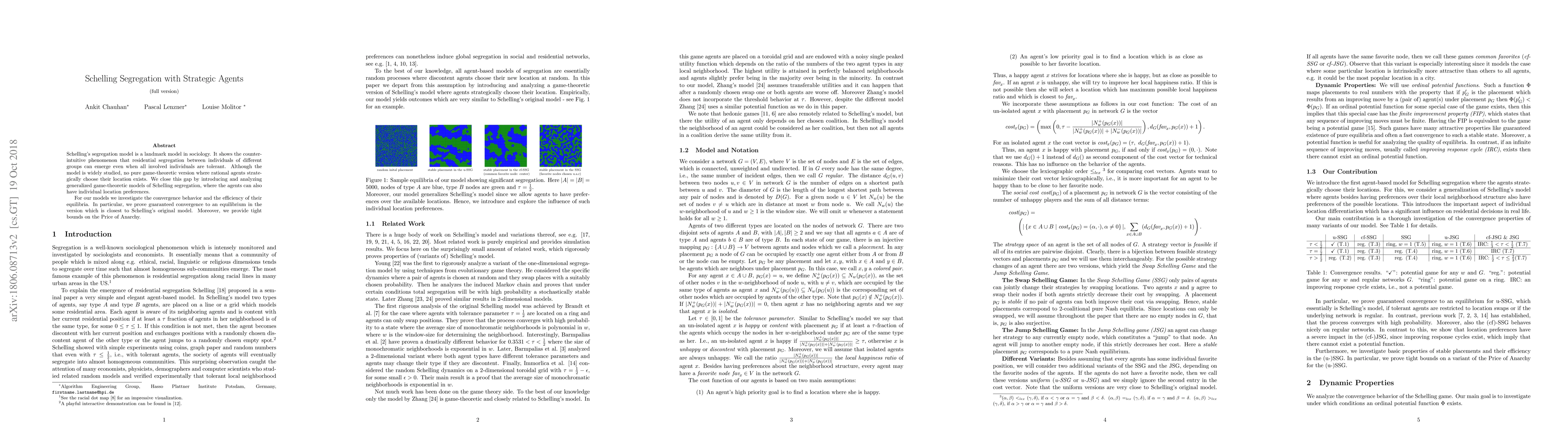 This paper introduces game-theoretic models of Schelling segregation where rational agents strategically choose their locations, considering individual preferences. It analyzes convergence behavior and efficiency, proving guaranteed convergence to an equilibrium and providing tight bounds on the Price of Anarchy.