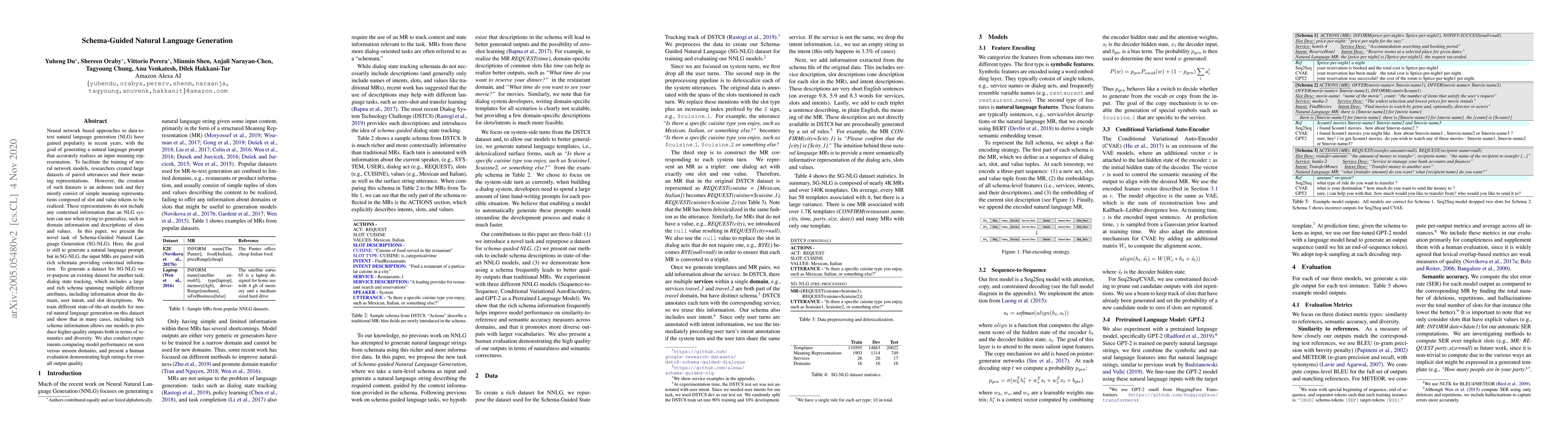 This paper introduces Schema-Guided Natural Language Generation (SG-NLG), aiming to enhance the generation of natural language prompts by incorporating rich schemata with contextual information. The authors demonstrate improved model performance and output quality by training state-of-the-art neural models on a repurposed dataset with extensive schema details, showing better generalization and higher human-rated output quality.