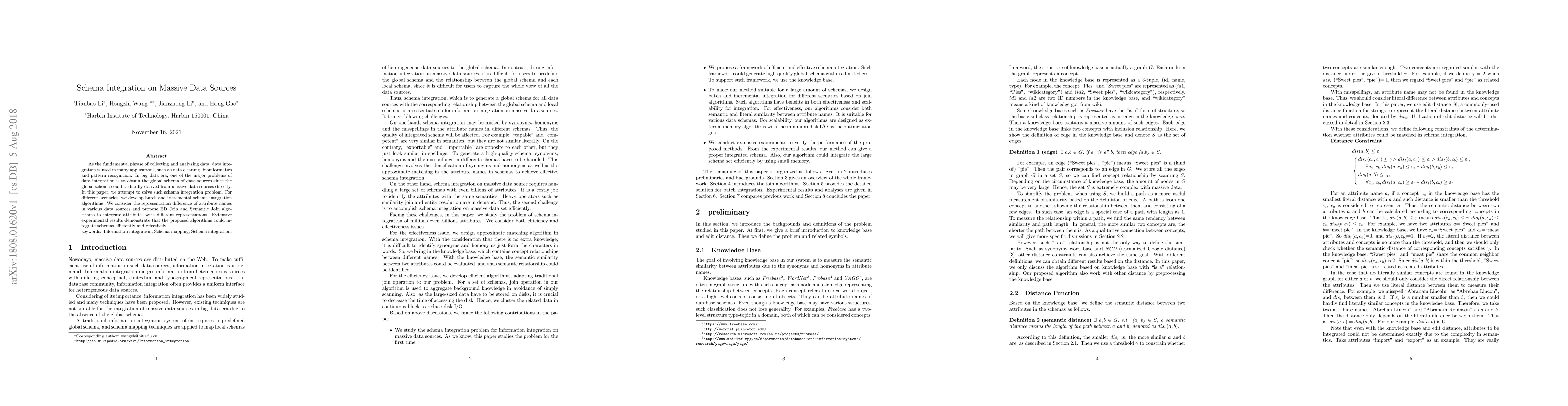 This paper addresses the challenge of schema integration in massive data sources, proposing both batch and incremental algorithms to tackle representation differences in attribute names. The ED Join and Semantic Join algorithms effectively integrate schemas, as demonstrated by successful experimental results.