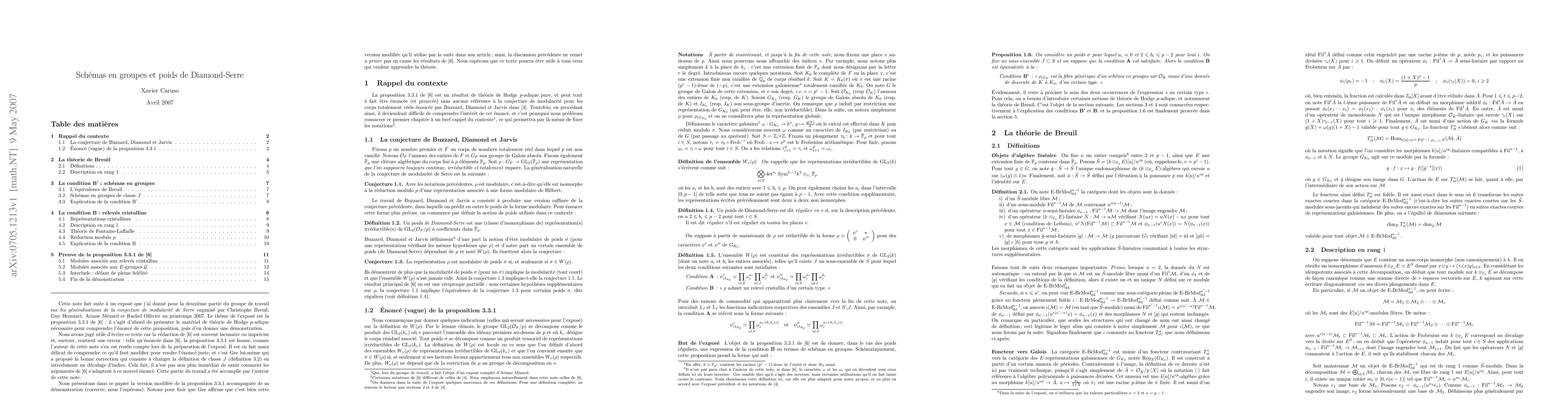 This note is a correction of (statement and proof of) proposition 3.3.1 of Toby Gee's preprint intitled *On the weights of mod p Hilbert modular forms*. The aim is to compare Galois representations arising from extensions of some group schemes (over the ring of integers of a p-adic field) endowed with a descent data, and extensions of some crystalline representations with given Hodge-Tate weights. The main tool of the proof is the theory of Breuil.