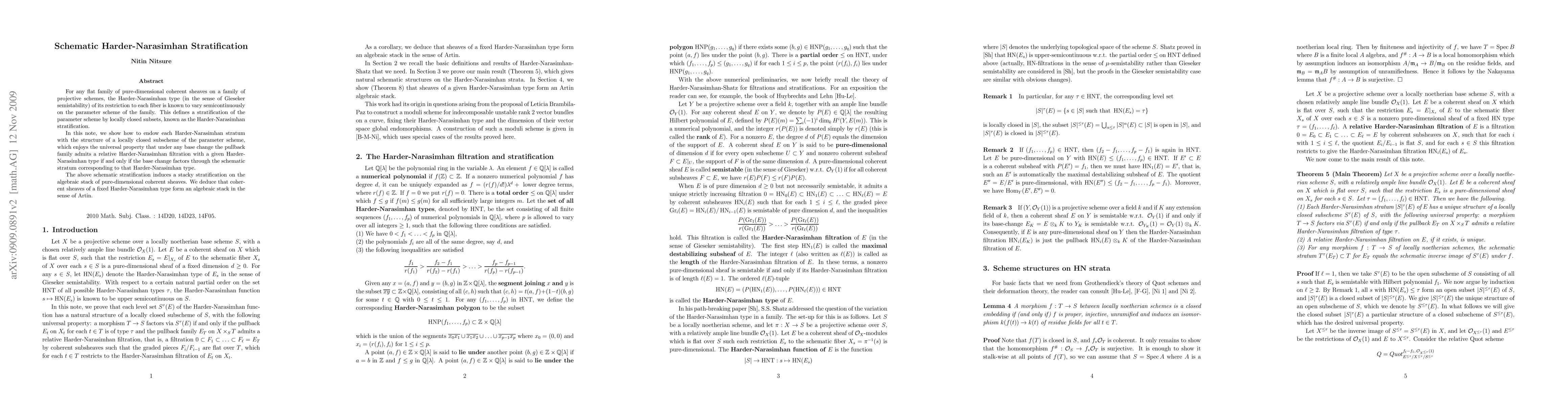 For any flat family of pure-dimensional coherent sheaves on a family of projective schemes, the Harder-Narasimhan type (in the sense of Gieseker semistability) of its restriction to each fiber is known to vary semicontinuously on the parameter scheme of the family. This defines a stratification of the parameter scheme by locally closed subsets, known as the Harder-Narasimhan stratification. In this note, we show how to endow each Harder-Narasimhan stratum with the structure of a locally closed subscheme of the parameter scheme, which enjoys the universal property that under any base change the pullback family admits a relative Harder-Narasimhan filtration with a given Harder-Narasimhan type if and only if the base change factors through the schematic stratum corresponding to that Harder-Narasimhan type. The above schematic stratification induces a stacky stratification on the algebraic stack of pure-dimensional coherent sheaves. We deduce that coherent sheaves of a fixed Harder-Narasimhan type form an algebraic stack in the sense of Artin.