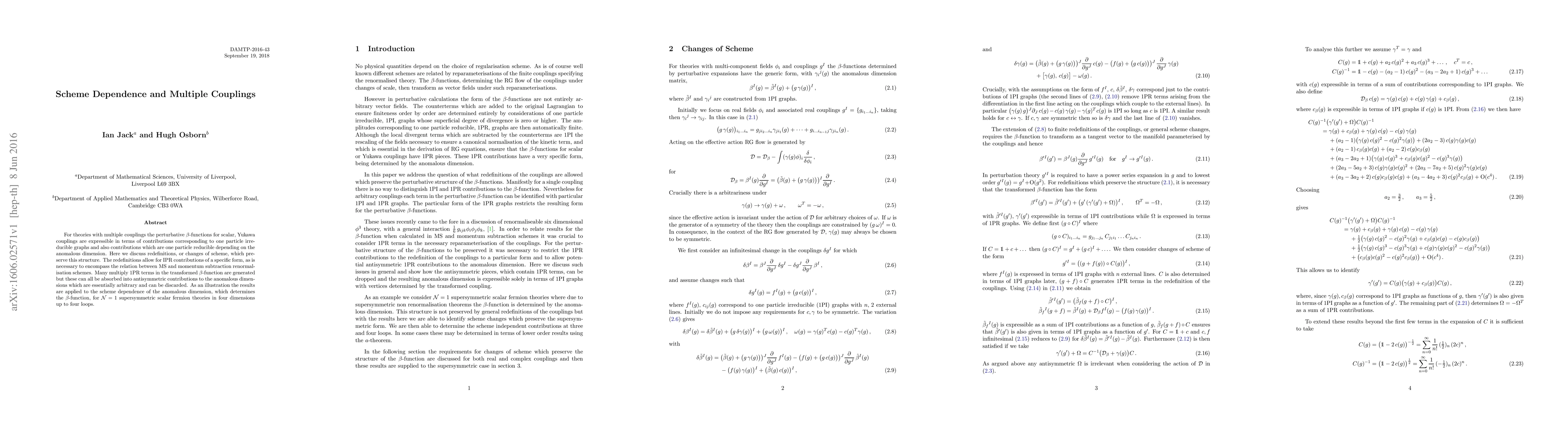 Researchers explored how changes in schemes can preserve the structure of perturbative beta-functions for theories with multiple couplings, allowing them to capture the relationship between different renormalization schemes. This work has implications for understanding scheme dependence in supersymmetric scalar fermion theories.