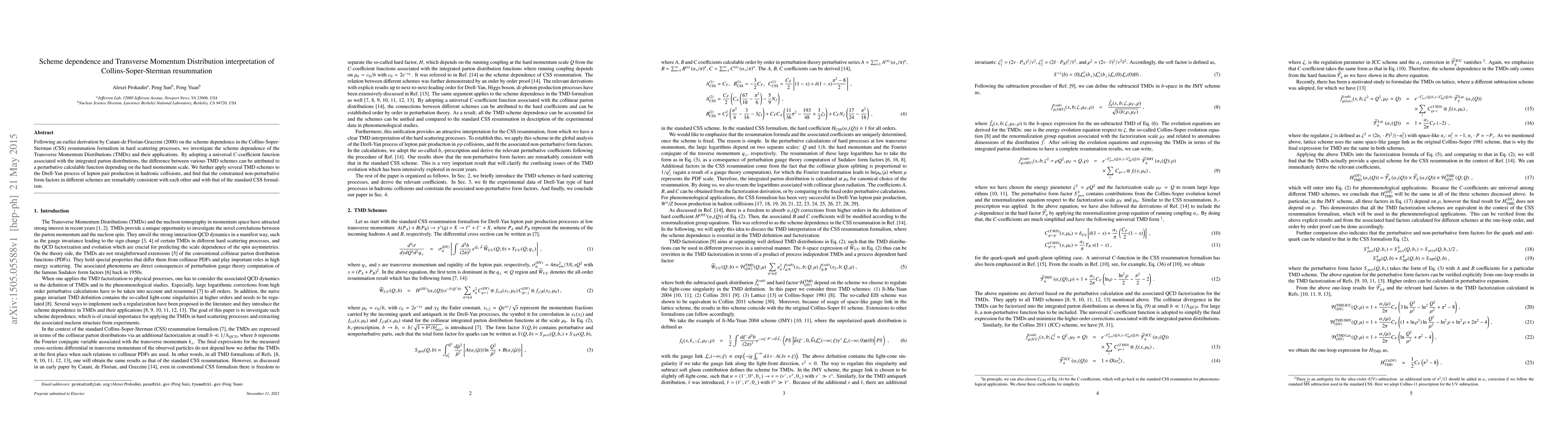Researchers investigate scheme dependence in Transverse Momentum Distributions (TMDs) using the Collins-Soper-Sterman formalism, finding that certain schemes produce consistent form factors in hadronic collisions.