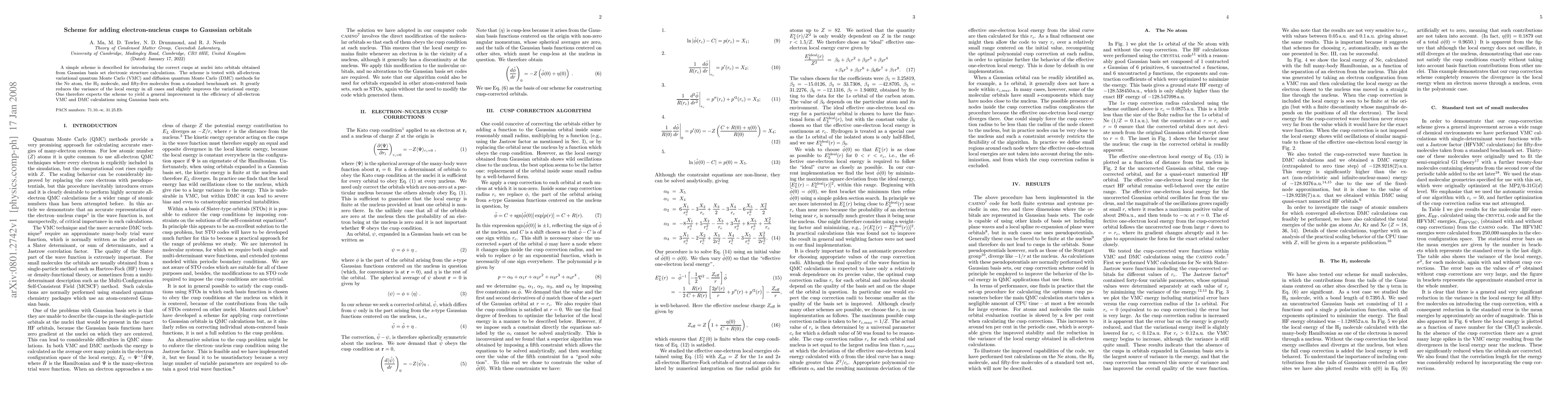 This paper proposes a method to add electron-nucleus cusps to Gaussian orbitals, improving the accuracy of all-electron variational and diffusion quantum Monte Carlo calculations. The scheme significantly reduces local energy variance and slightly improves variational energy across various molecules.