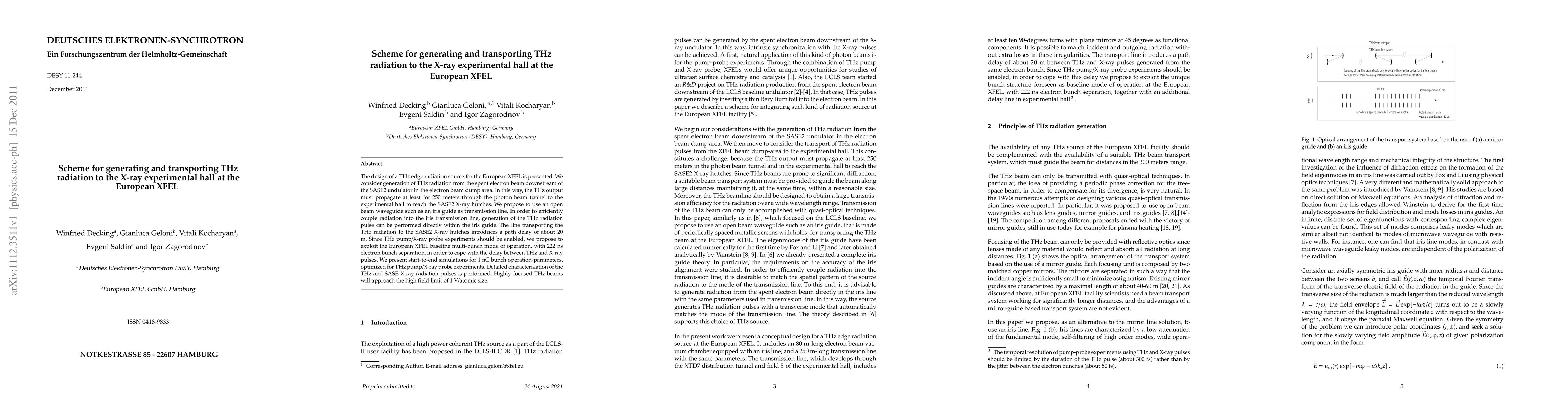 This paper presents a scheme for generating and transporting THz radiation from the electron beam dump area to the X-ray experimental hall at the European XFEL, proposing an iris guide for efficient transmission over 250 meters. It also discusses the use of the facility's multi-bunch mode to manage the path delay for THz pump/X-ray probe experiments.