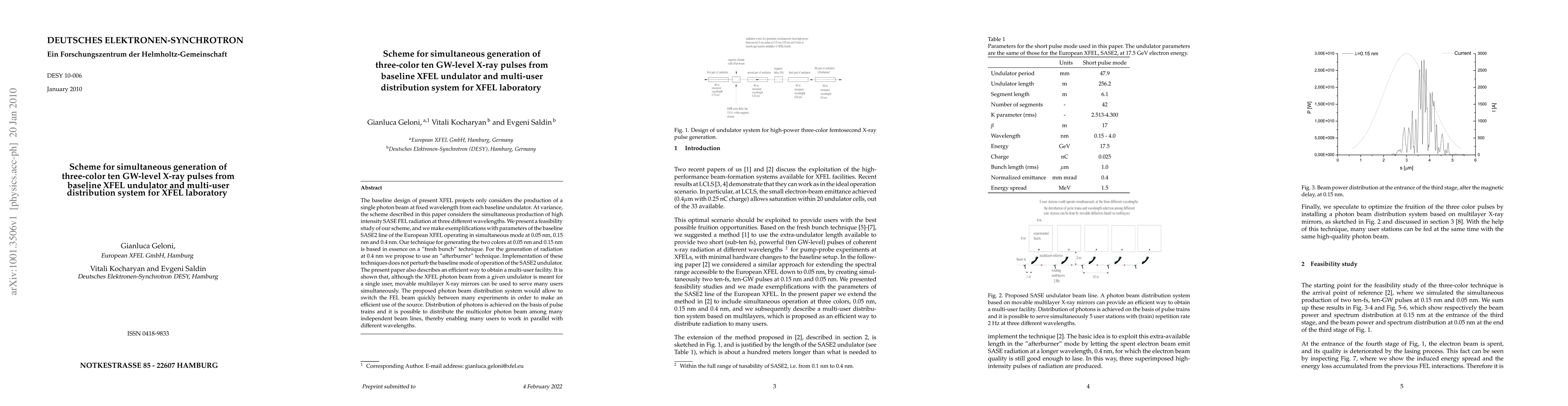 The baseline design of present XFEL projects only considers the production of a single photon beam at fixed wavelength from each baseline undulator. At variance, the scheme described in this paper considers the simultaneous production of high intensity SASE FEL radiation at three different wavelengths. We present a feasibility study of our scheme, and we make exemplifications with parameters of the baseline SASE2 line of the European XFEL operating in simultaneous mode at 0.05 nm, 0.15 nm and 0.4 nm. Our technique for generating the two colors at 0.05 nm and 0.15 nm is based in essence on a "fresh bunch" technique. For the generation of radiation at 0.4 nm we propose to use an "afterburner" technique. Implementation of these techniques does not perturb the baseline mode of operation of the SASE2 undulator. The present paper also describes an efficient way to obtain a multi-user facility. It is shown that, although the XFEL photon beam from a given undulator is meant for a single user, movable multilayer X-ray mirrors can be used to serve many users simultaneously. The proposed photon beam distribution system would allow to switch the FEL beam quickly between many experiments in order to make an efficient use of the source. Distribution of photons is achieved on the basis of pulse trains and it is possible to distribute the multicolor photon beam among many independent beam lines, thereby enabling many users to work in parallel with different wavelengths.