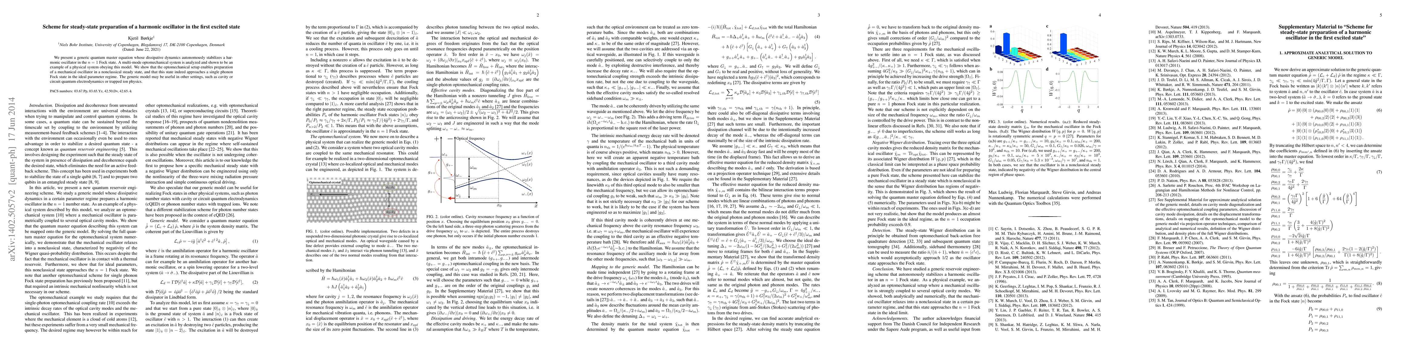 This paper proposes a quantum master equation that stabilizes a harmonic oscillator in its first excited state, demonstrated through an optomechanical system. The optomechanical setup effectively prepares a mechanical oscillator in a nonclassical steady state, resembling a single phonon Fock state under ideal conditions, with potential applications in various quantum systems.
