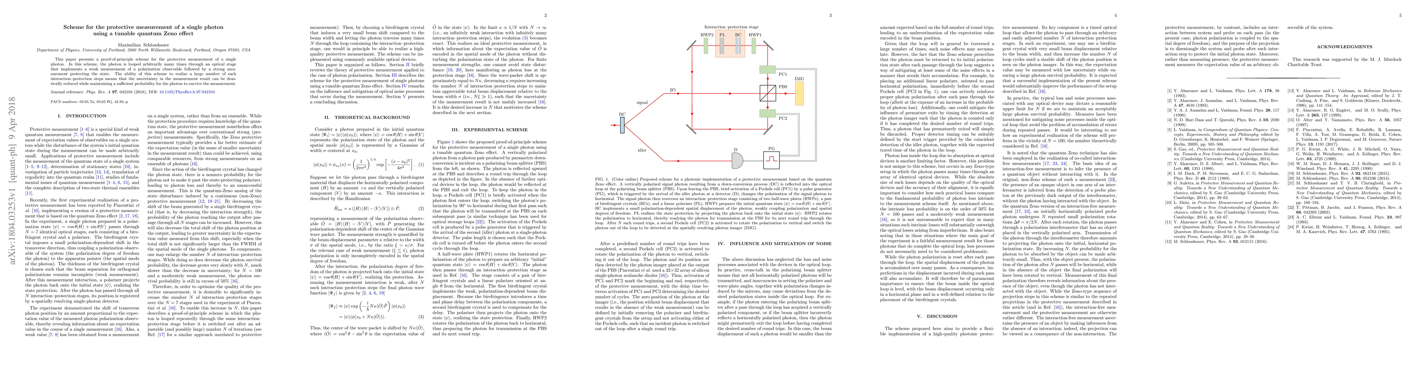 This paper presents a proof-of-principle scheme for the protective measurement of a single photon. In this scheme, the photon is looped arbitrarily many times through an optical stage that implements a weak measurement of a polarization observable followed by a strong measurement protecting the state. The ability of this scheme to realize a large number of such interaction-protection steps means that the uncertainty in the measurement result can be drastically reduced while maintaining a sufficient probability for the photon to survive the measurement.
