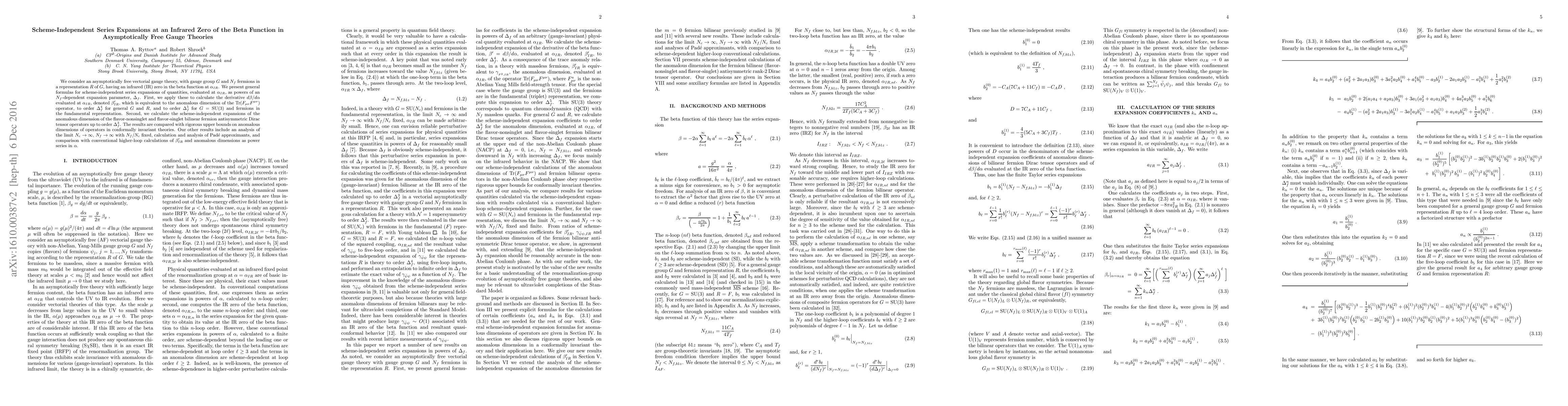 This paper develops scheme-independent series expansions for quantities in asymptotically free gauge theories at an infrared zero of the beta function, focusing on the anomalous dimension of specific operators. The study provides detailed calculations for the derivative $\beta'_{IR}$ and anomalous dimensions of fermion bilinear operators up to certain orders in $\Delta_f$, comparing results with rigorous upper bounds and conventional higher-loop calculations.