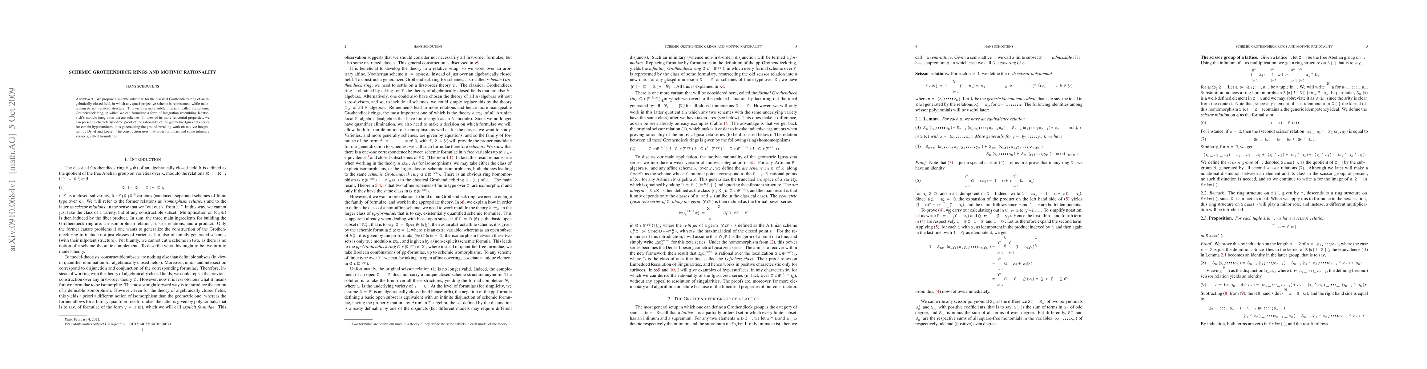 The development of the schemic Grothendieck ring and its associated integration method via formularies, providing a new perspective on Grothendieck rings and motivic integration.