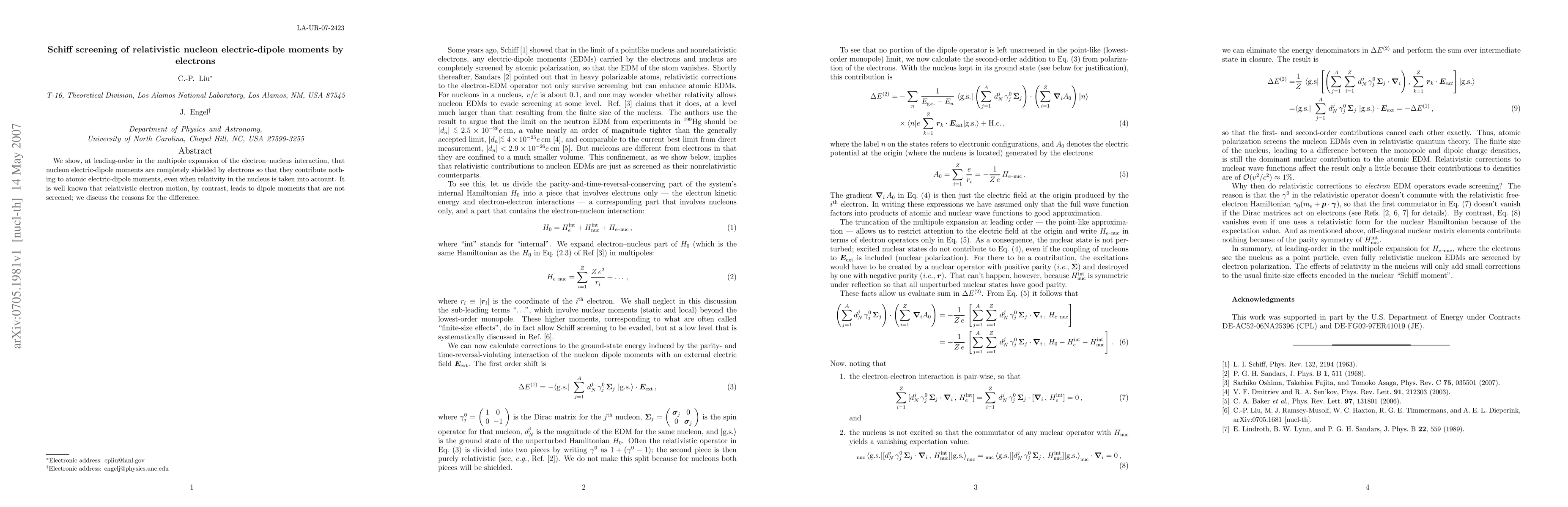 Summary: This research demonstrates that nucleon electric-dipole moments are fully shielded by electrons at leading-order, resulting in no contribution to atomic electric-dipole moments, even with relativistic effects in the nucleus considered. The study contrasts this with the unshielded relativistic electron dipole moments.
