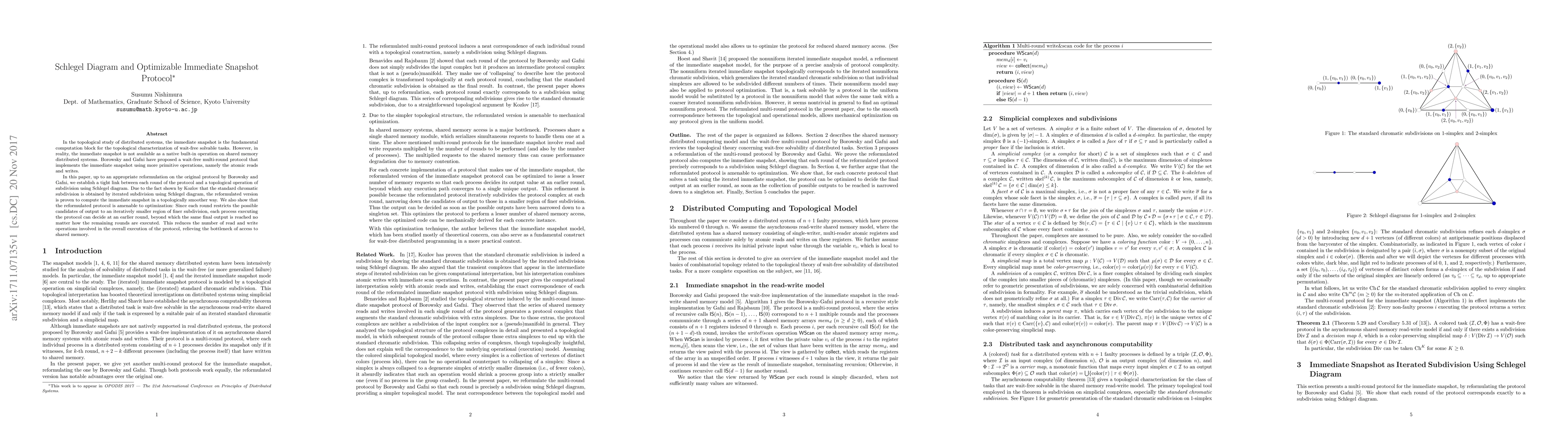 This paper reformulates Borowsky and Gafni's wait-free multi-round protocol for implementing immediate snapshots in distributed systems using Schlegel diagram subdivision, proving it to be more topologically efficient and optimizable by reducing unnecessary read and write operations.