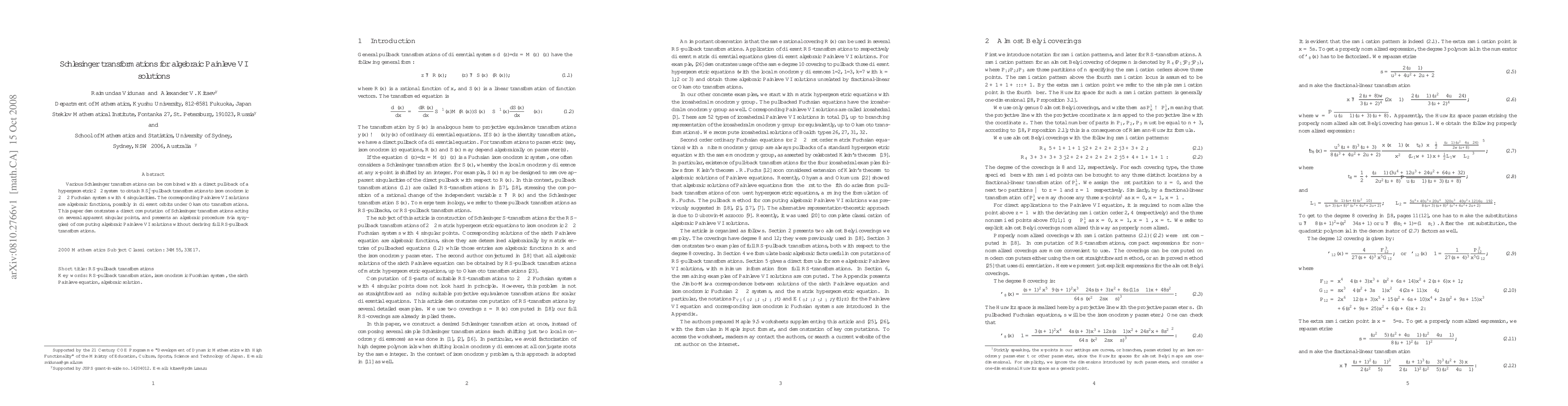Various Schlesinger transformations can be combined with a direct pull-back of a hypergeometric 2x2 system to obtain $RS^2_4$-pullback transformations to isomonodromic 2x2 Fuchsian systems with 4 singularities. The corresponding Painleve VI solutions are algebraic functions, possibly in different orbits under Okamoto transformations. This paper demonstrates a direct computation of Schlesinger transformations acting on several apparent singular points, and presents an algebraic procedure (via syzygies) of computing algebraic Painleve VI solutions without deriving full RS-pullback transformations.
