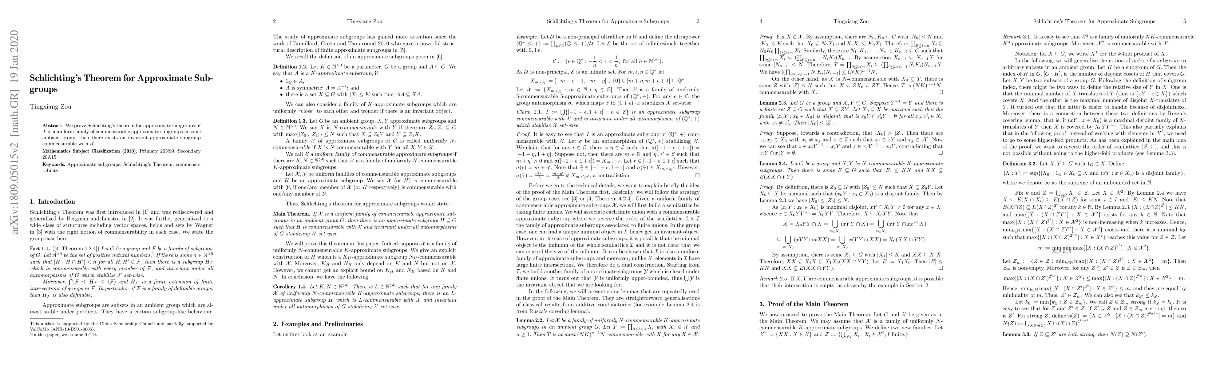 Researchers prove Schlichting's theorem for approximate subgroups, showing that a uniform family of commensurable groups can be combined to form an invariant, commensurable subgroup.