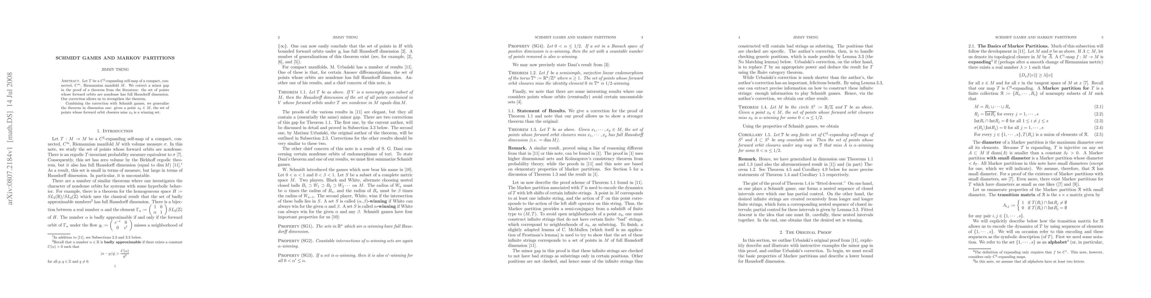 Researchers have generalized a theorem about self-maps of manifolds to show that sets of points with certain properties can be used to win games like Schmidt games, providing new insights into the dynamics of these systems.