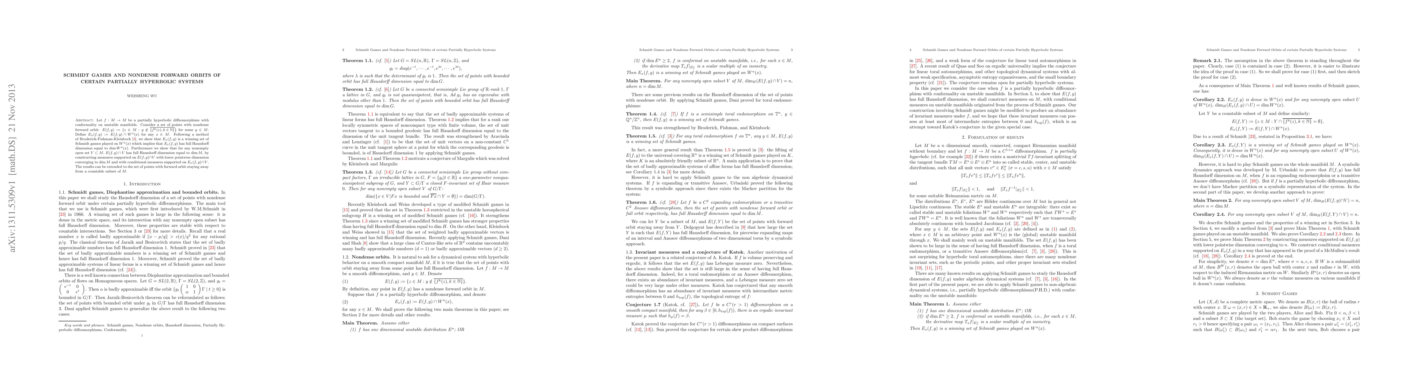 This paper investigates partially hyperbolic diffeomorphisms with conformality on unstable manifolds, demonstrating that sets of points with nondense forward orbits are winning sets in Schmidt games on unstable manifolds. It shows these sets have full Hausdorff dimension, extending the results to points whose orbits avoid countable subsets.