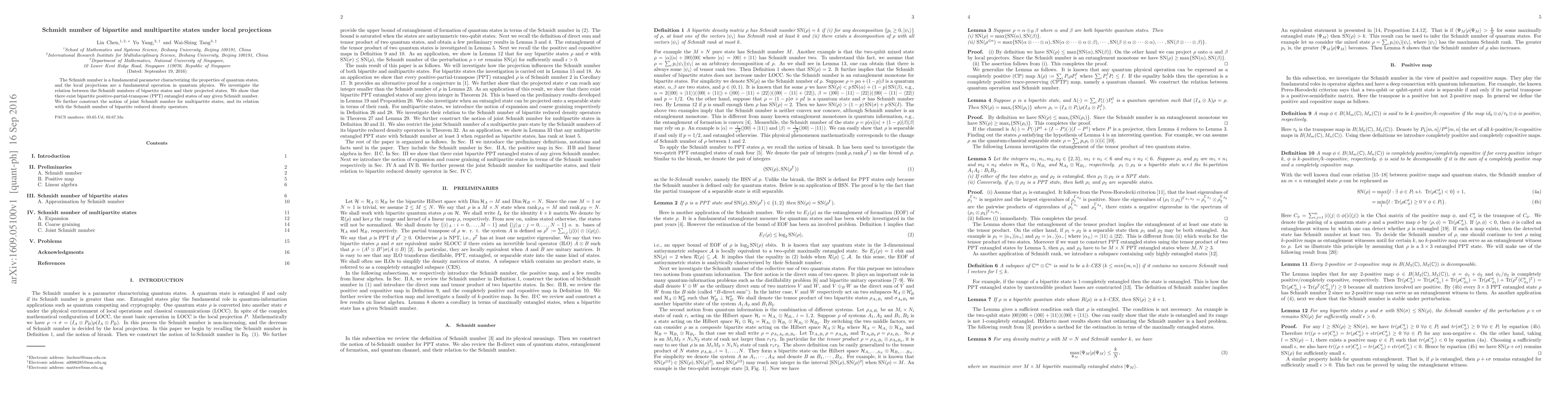 This paper explores how the Schmidt number, a key measure of quantum state properties, changes under local projections. It reveals the existence of bipartite entangled states with any Schmidt number and introduces the concept of joint Schmidt number for multipartite states, linking it to the Schmidt number of bipartite reduced density operators.