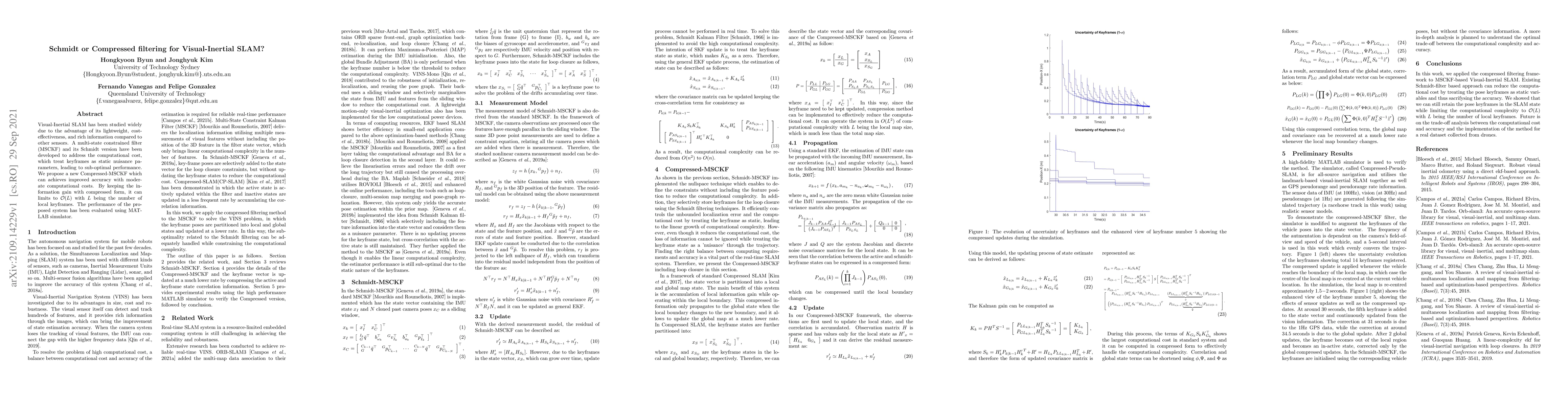 This paper proposes a Compressed-MSCKF for Visual-Inertial SLAM to improve accuracy while managing computational costs, contrasting with traditional Schmidt filtering. The new method maintains information gain with a complexity of $\mathcal{O}(L)$, where $L$ is the number of local keyframes.