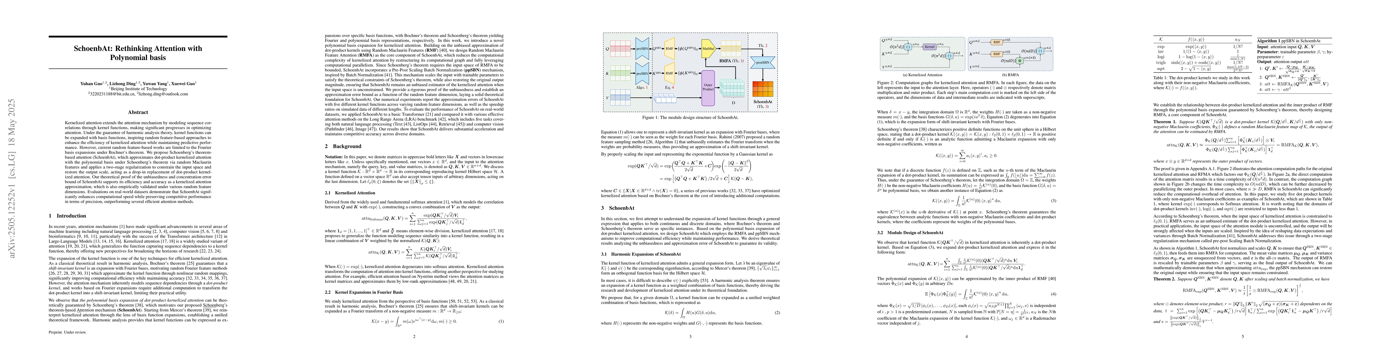 The research introduces SchoenbAt, a method that enhances the efficiency of kernelized attention in machine learning models using polynomial basis functions instead of the traditional Fourier basis. SchoenbAt, grounded in Schoenberg's theorem and two-stage regularization, maintains predictive performance while significantly improving computational speed. It has been theoretically proven and empirically validated to outperform other efficient attention methods on real-world datasets.