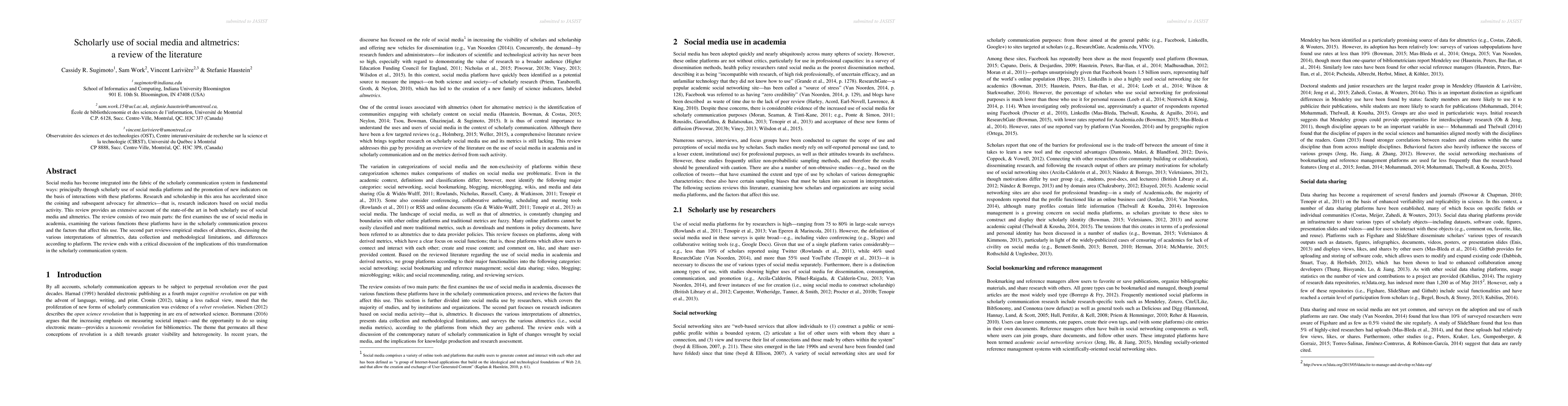 This review examines scholarly use of social media and the emerging field of altmetrics, which measures research impact based on social media interactions. It explores the roles of social media in academia and reviews empirical studies on altmetrics, highlighting data collection challenges and platform-specific differences, concluding with a critical analysis of the implications for scholarly communication.