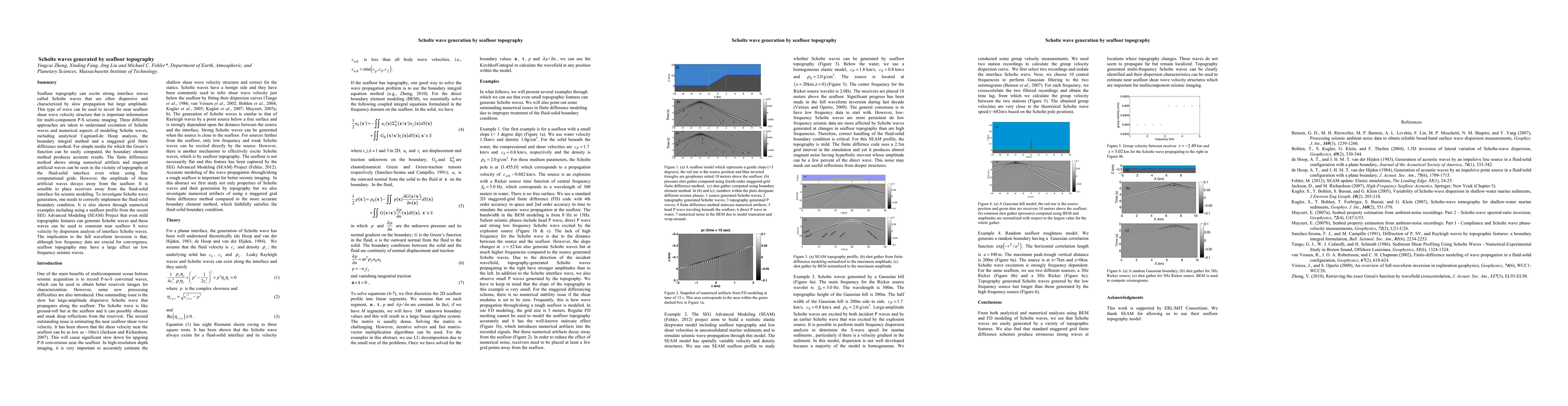 Seafloor topography can generate Scholte waves with large amplitude, which can be used to constrain near-seafloor shear wave velocity structure. Seafloor topography's impact on low-frequency seismic waves is significant, even at mild topographic features.