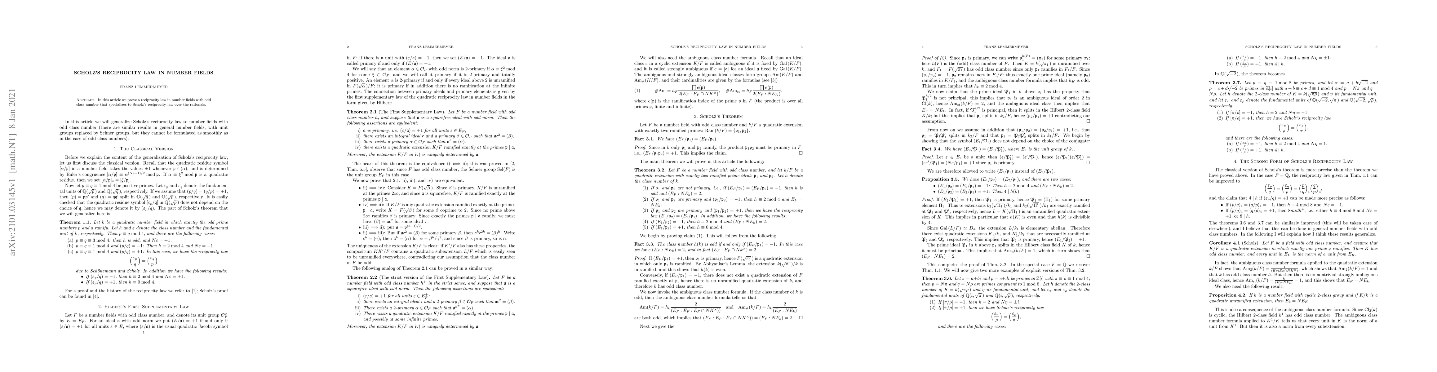 Summary: This paper establishes a generalized reciprocity law in number fields with odd class number, which specifically reduces to Scholz's reciprocity law for the rational numbers. The focus is on extending classical results to broader algebraic number theory contexts.