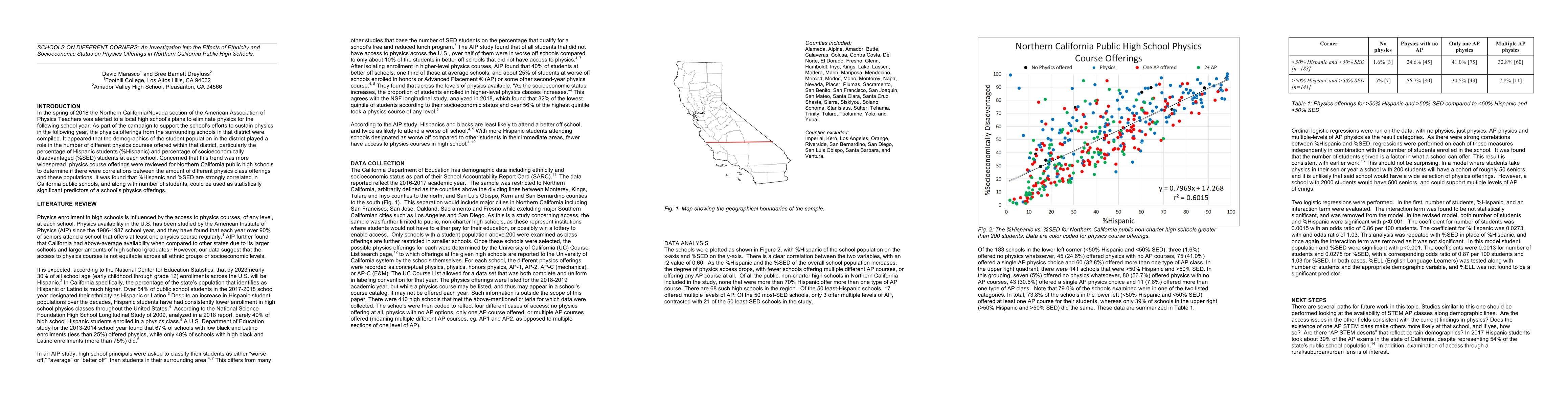 This study investigates the correlation between ethnicity, socioeconomic status, and the number of physics courses offered in Northern California public high schools. Findings reveal that higher percentages of Hispanic and socioeconomically disadvantaged students are strongly correlated with fewer physics offerings, suggesting a potential disparity in educational opportunities.