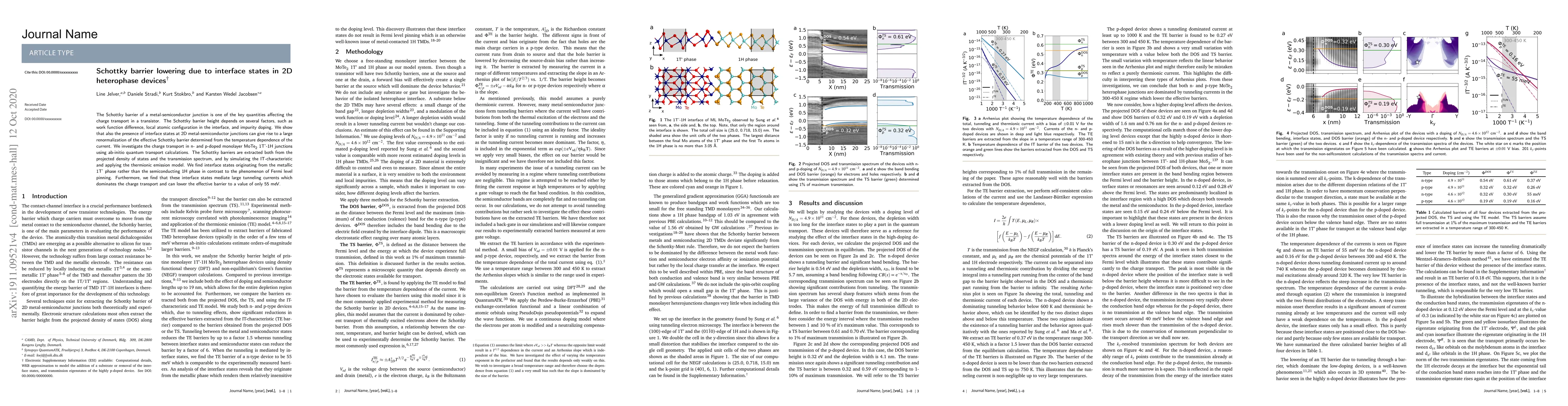 This paper investigates how interface states at 2D metal-semiconductor junctions can significantly lower the Schottky barrier, affecting charge transport in transistors. Using ab-initio quantum transport calculations, it finds that interface states from the metallic 1T' phase dominate charge transport, reducing the effective Schottky barrier to 55 meV.