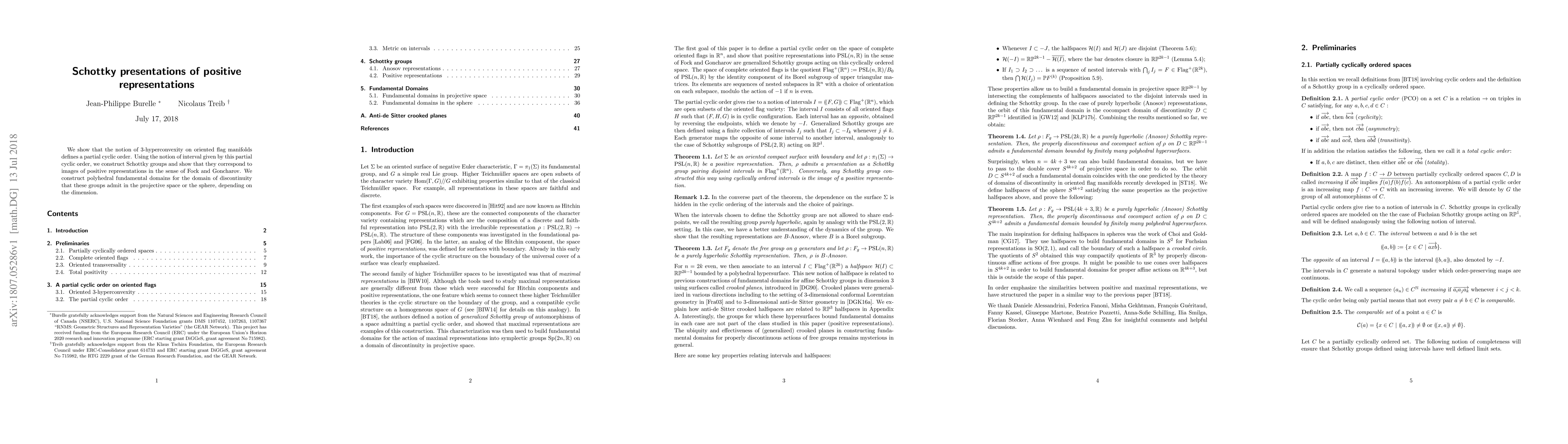We show that the notion of $3$-hyperconvexity on oriented flag manifolds defines a partial cyclic order. Using the notion of interval given by this partial cyclic order, we construct Schottky groups and show that they correspond to images of positive representations in the sense of Fock and Goncharov. We construct polyhedral fundamental domains for the domain of discontinuity that these groups admit in the projective space or the sphere, depending on the dimension.