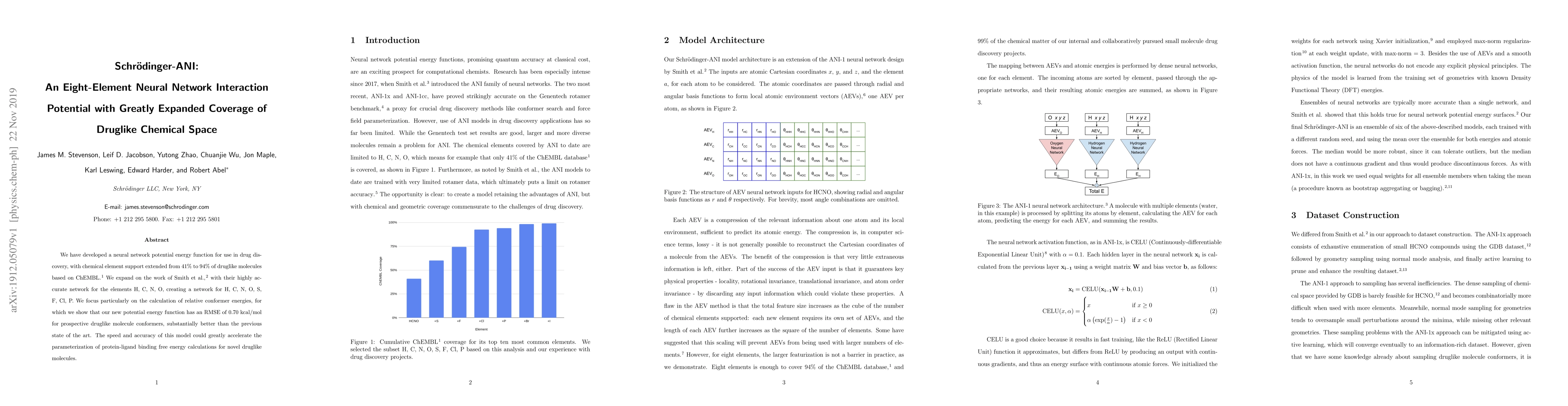 This paper introduces a new neural network potential energy function, Schr\"odinger-ANI, that significantly expands the coverage of druglike chemical elements from 41% to 94%. It achieves an RMSE of 0.70 kcal/mol for relative conformer energies, outperforming previous methods and potentially accelerating drug discovery processes.