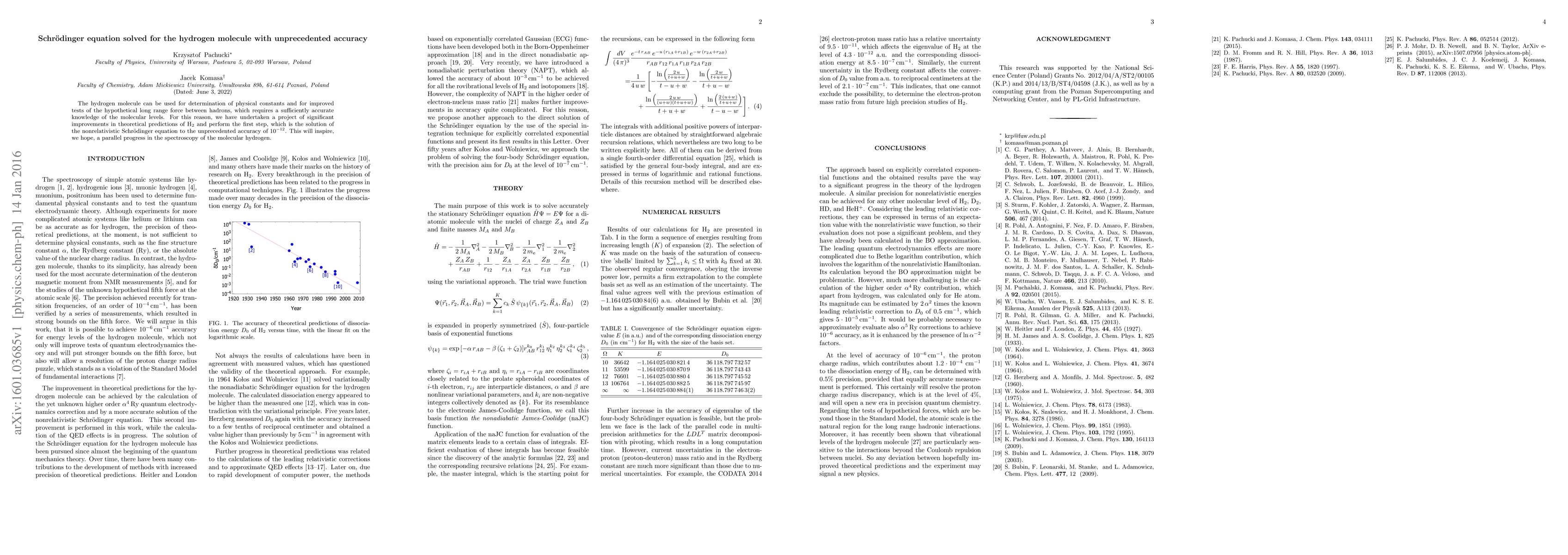 The hydrogen molecule can be used for determination of physical constants and for improved tests of the hypothetical long range force between hadrons, which requires a sufficiently accurate knowledge of the molecular levels. For this reason, we have undertaken a project of significant improvements in theoretical predictions of H$_2$ and perform the first step, which is the solution of the nonrelativistic Schr\"odinger equation to the unprecedented accuracy of $10^{-12}$. This will inspire, we hope, a parallel progress in the spectroscopy of the molecular hydrogen.