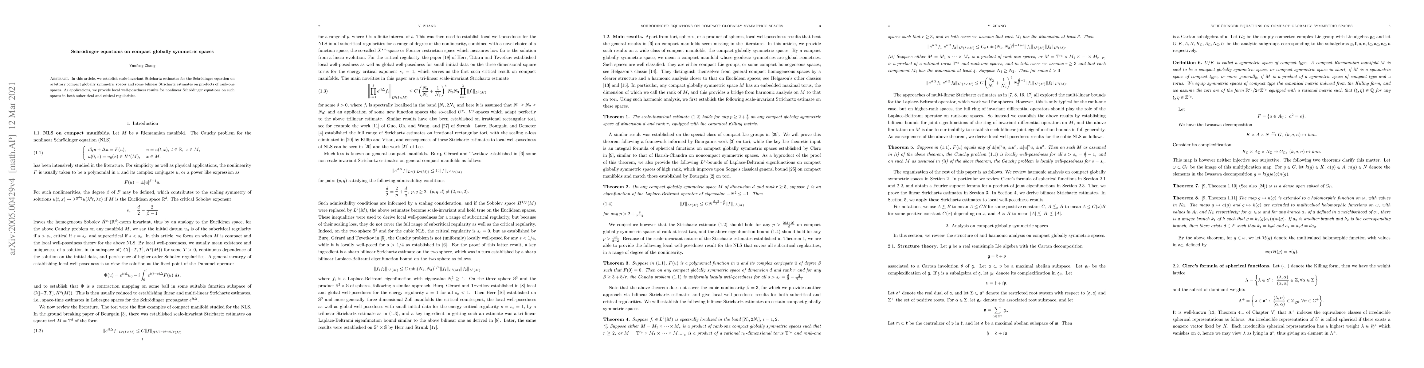 This paper establishes scale-invariant Strichartz estimates for the Schrödinger equation on compact globally symmetric spaces and provides bilinear Strichartz estimates for rank-one space products, leading to local well-posedness results for nonlinear Schrödinger equations in various regularities.