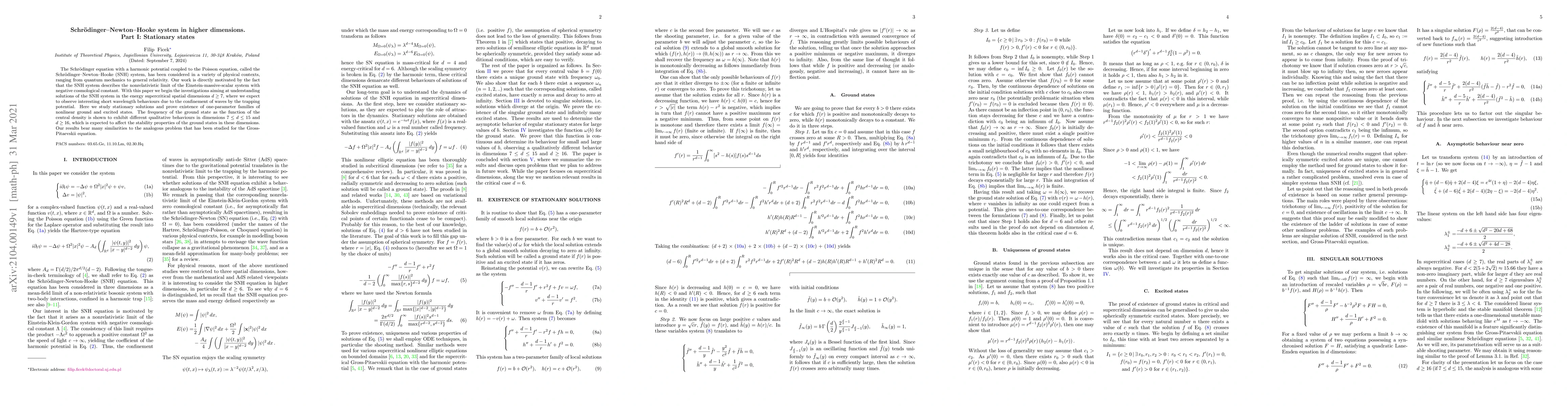 The Schr\"odinger equation with a harmonic potential coupled to the Poisson equation, called the Schr\"odinger-Newton-Hooke (SNH) system, has been considered in a variety of physical contexts, ranging from quantum mechanics to general relativity. Our work is directly motivated by the fact that the SNH system describes the nonrelativistic limit of the Einstein-massive-scalar system with negative cosmological constant. With this paper we begin the investigations aiming at understanding solutions of the SNH system in the energy supercritical spatial dimensions $d\geq 7$, where we expect to observe interesting short wavelength behaviours due to the confinement of waves by the trapping potential. Here we study stationary solutions and prove existence of one-parameter families of nonlinear ground and excited states. The frequency of the ground state as the function of the central density is shown to exhibit different qualitative behaviours in dimensions $7\leq d\leq 15$ and $d\geq 16$, which is expected to affect the stability properties of the ground states in these dimensions. Our results bear many similarities to the analogous problem that has been studied for the Gross-Pitaevskii equation.