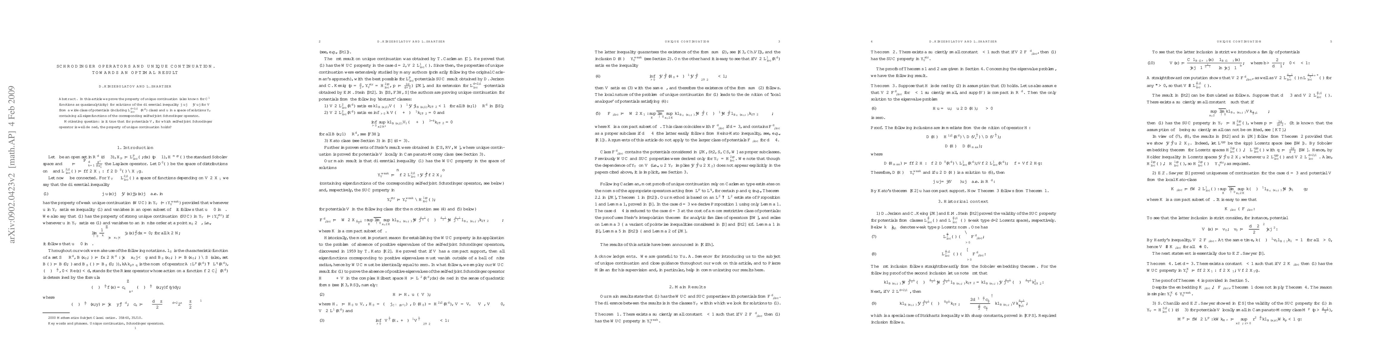 In this article we prove the property of unique continuation (also known for C^\infty functions as quasianalyticity) for solutions of the differential inequality |\Delta u| \leq |Vu| for V from a wide class of potentials (including L^{d/2,\infty}_{\loc}(R^d) class) and u in a space of solutions Y_V containing all eigenfunctions of the corresponding self-adjoint Schr\"odinger operator. Motivating question: is it true that for potentials V, for which self-adjoint Schr\"odinger operator is well defined, the property of unique continuation holds?