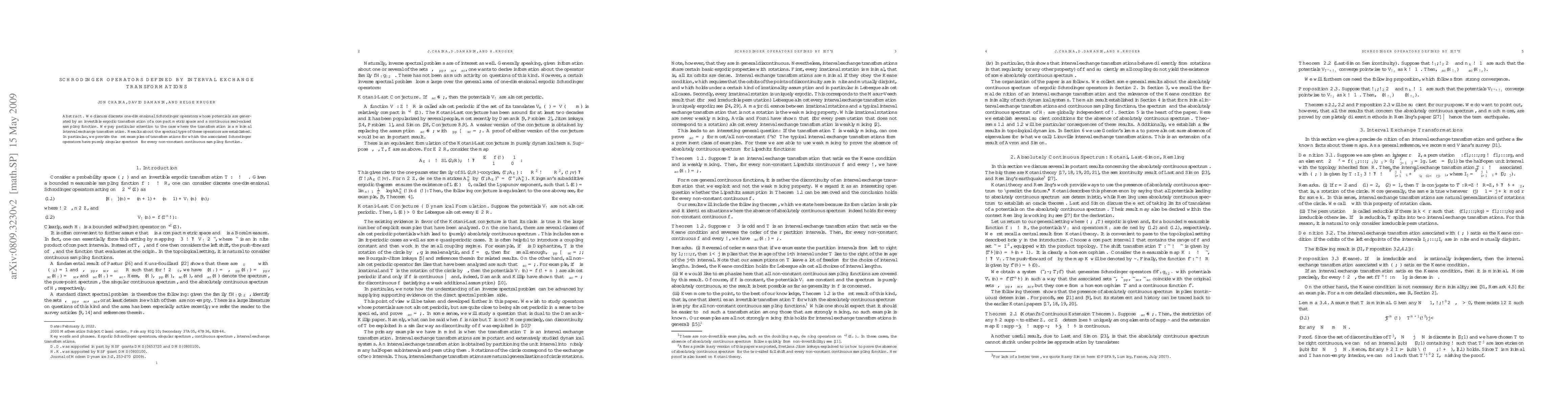 This paper explores discrete one-dimensional Schrödinger operators with potentials derived from interval exchange transformations and continuous sampling functions. It focuses on minimal interval exchange transformations, establishing results on the spectrum, including the first examples of such transformations yielding purely singular spectrum for any non-constant sampling function.