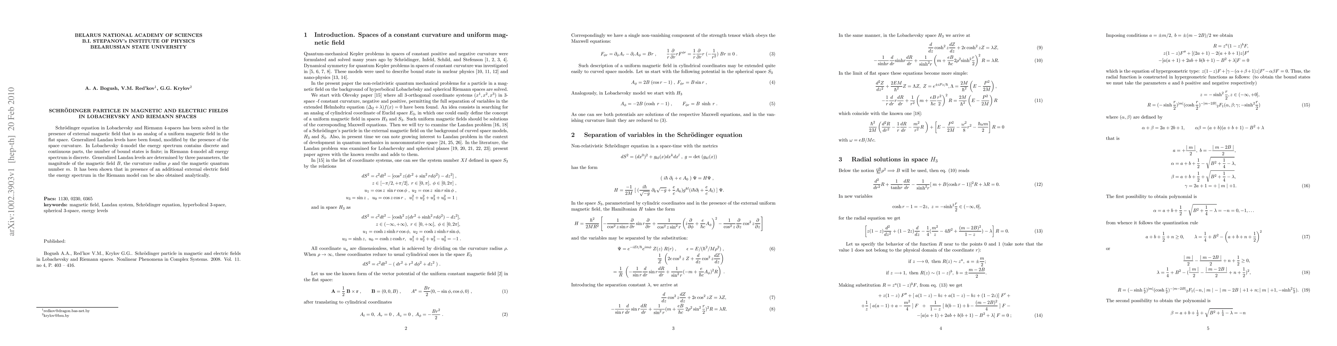 This paper solves the Schrödinger equation in curved Lobachevsky and Riemann 4-spaces under a uniform magnetic field, revealing generalized Landau levels modified by space curvature. The Lobachevsky model exhibits both discrete and continuous energy spectra with finite bound states, while the Riemann model shows a purely discrete spectrum. The energy spectrum is influenced by the magnetic field strength, curvature radius, and magnetic quantum number, and can be analytically obtained in the presence of an additional electric field in the Riemann model.