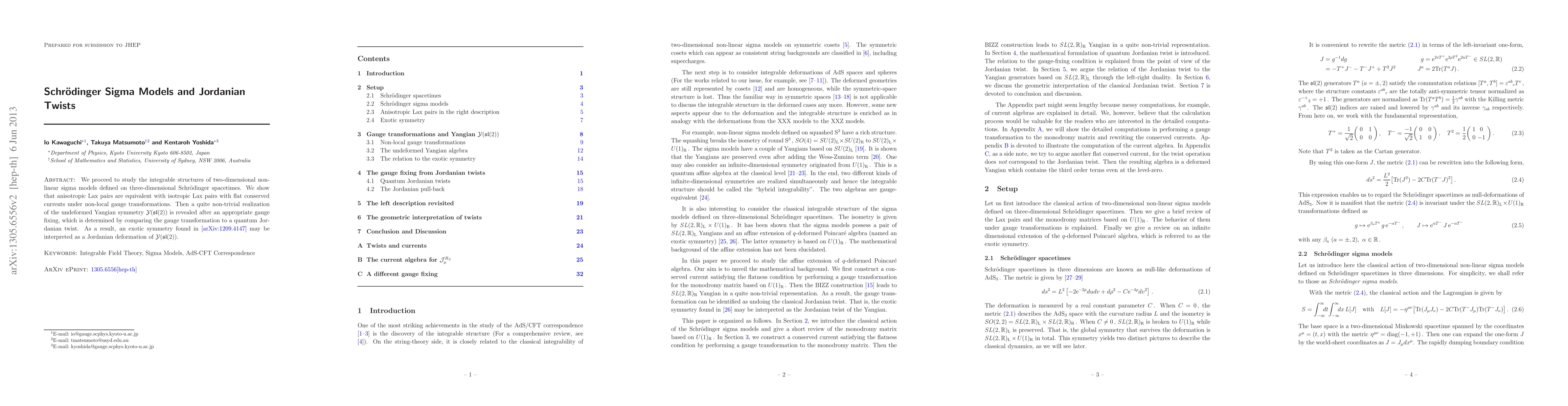 We proceed to study the integrable structures of two-dimensional non-linear sigma models defined on three-dimensional Schrodinger spacetimes. We show that anisotropic Lax pairs are equivalent with isotropic Lax pairs with flat conserved currents under non-local gauge transformations. Then a quite non-trivial realization of the undeformed Yangian symmetry Y(sl(2)) is revealed after an appropriate gauge fixing, which is determined by comparing the gauge transformation to a quantum Jordanian twist. As a result, an exotic symmetry found in arXiv:1209.4147 may be interpreted as a Jordanian deformation of Y(sl(2)).