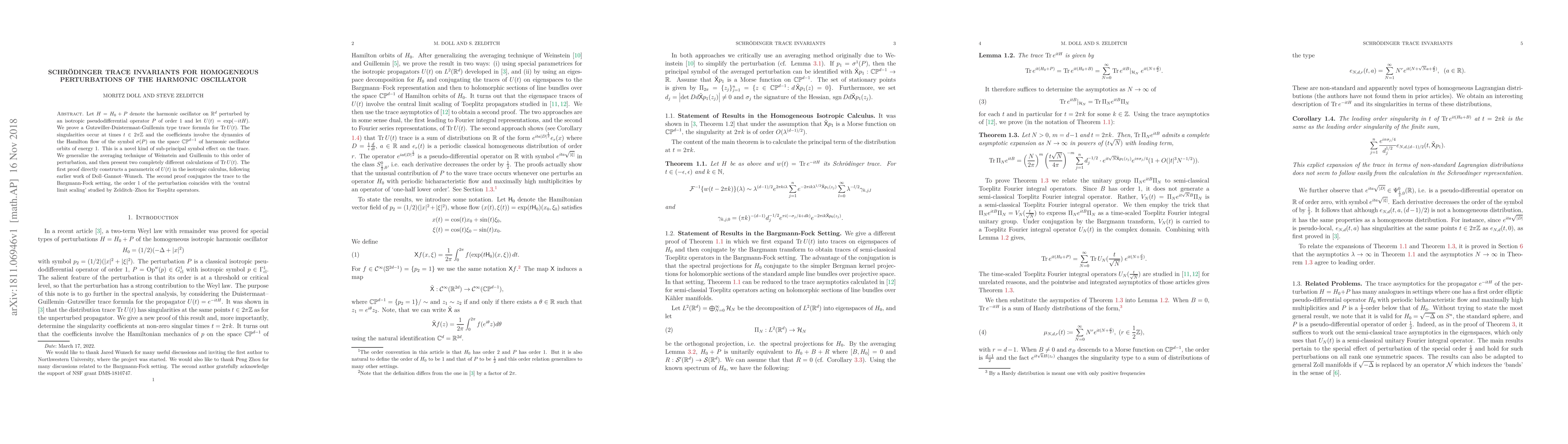 This paper proves a trace formula for the perturbed harmonic oscillator, revealing singularities at integer multiples of $2\pi$. The coefficients are influenced by the dynamics of the Hamilton flow on the space of harmonic oscillator orbits. Two distinct proofs are presented: one constructs a parametrix in the isotropic calculus, and the other conjugates the trace to the Bargmann-Fock setting.