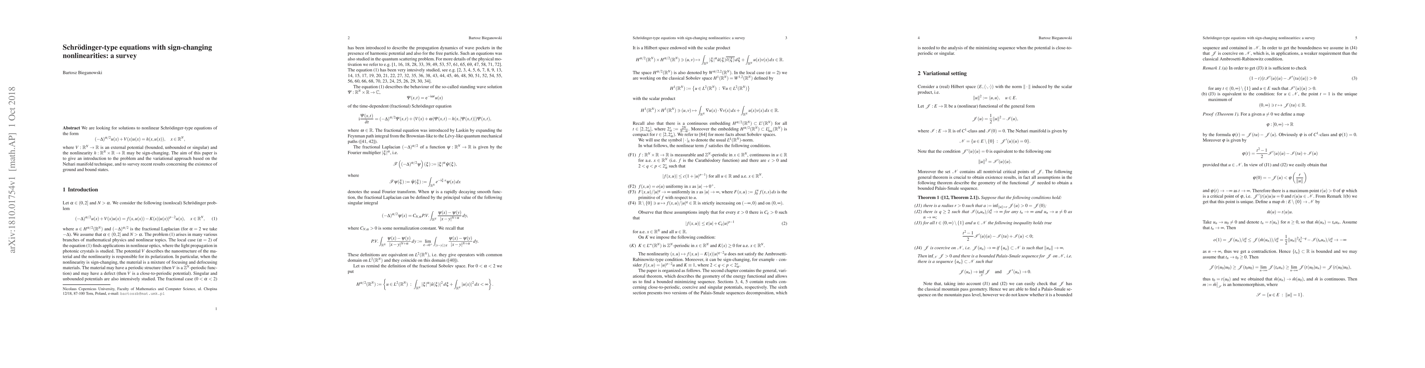 We are looking for solutions to nonlinear Schr\"odinger-type equations of the form $$ (-\Delta)^{\alpha / 2} u (x) + V(x) u(x) = h (x,u(x)), \quad x \in \mathbb{R}^N, $$ where $V : \mathbb{R}^N \rightarrow \mathbb{R}$ is an external potential (bounded, unbounded or singular) and the nonlinearity $h : \mathbb{R}^N \times \mathbb{R} \rightarrow \mathbb{R}$ may be sign-changing. The aim of this paper is to give an introduction to the problem and the variational approach based on the Nehari manifold technique, and to survey recent results concerning the existence of ground and bound states.