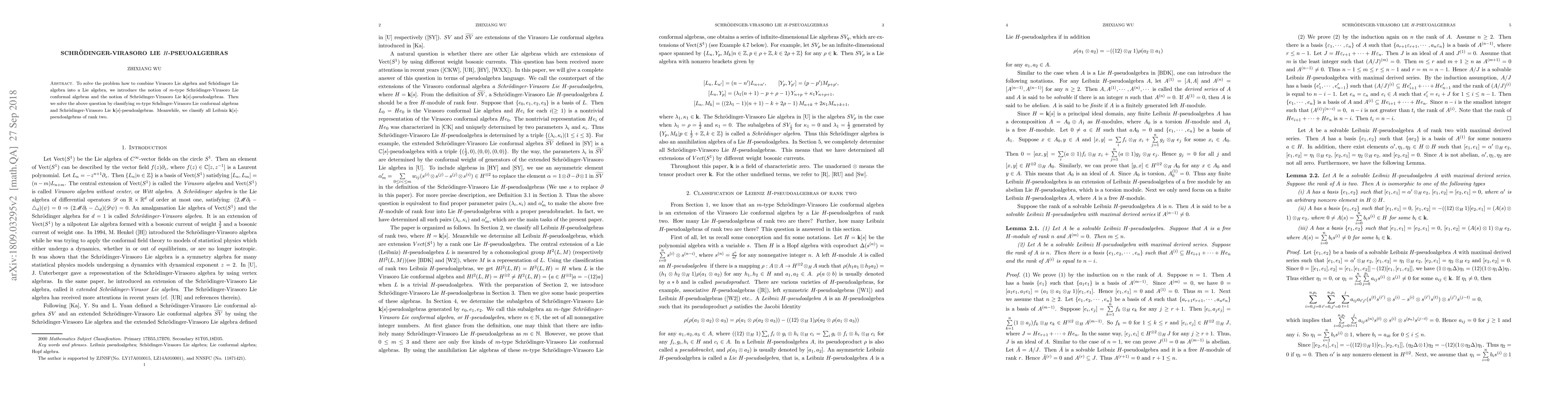 This paper introduces and classifies Schrodinger-Virasoro Lie H-pseudoalgebras, which are annihilation algebras of rank three Lie conformal algebras, and determines all Leibniz H-pseudoalgebras of rank two.