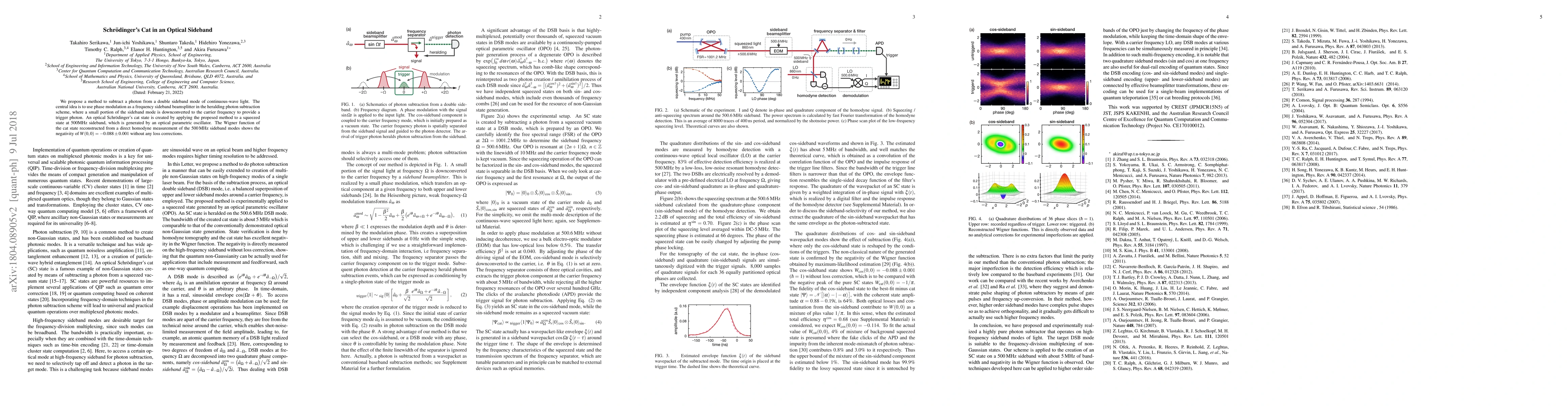 This paper proposes a method to generate optical Schrödinger's cat states by subtracting a photon from a double sideband mode using phase modulation and heralding photon subtraction. The resulting cat state shows a negative Wigner function value, indicating quantum superposition.