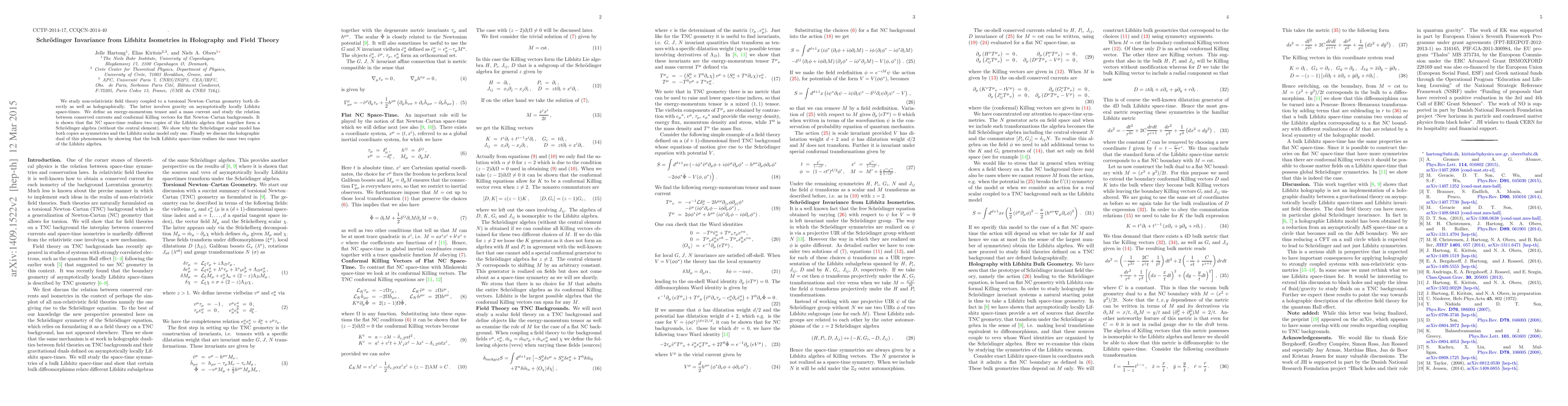 We study non-relativistic field theory coupled to a torsional Newton-Cartan geometry both directly as well as holographically. The latter involves gravity on asymptotically locally Lifshitz space-times. We define an energy-momentum tensor and a mass current and study the relation between conserved currents and conformal Killing vectors for flat Newton-Cartan backgrounds. It is shown that flat NC space-time realizes two copies of the Lifshitz algebra that together form a Schroedinger algebra (without the central element). We show why the Schroedinger scalar model has both copies as symmetries and the Lifshitz scalar model only one. Finally we discuss the holographic dual of this phenomenon by showing that the bulk Lifshitz space-time realizes the same two copies of the Lifshitz algebra.